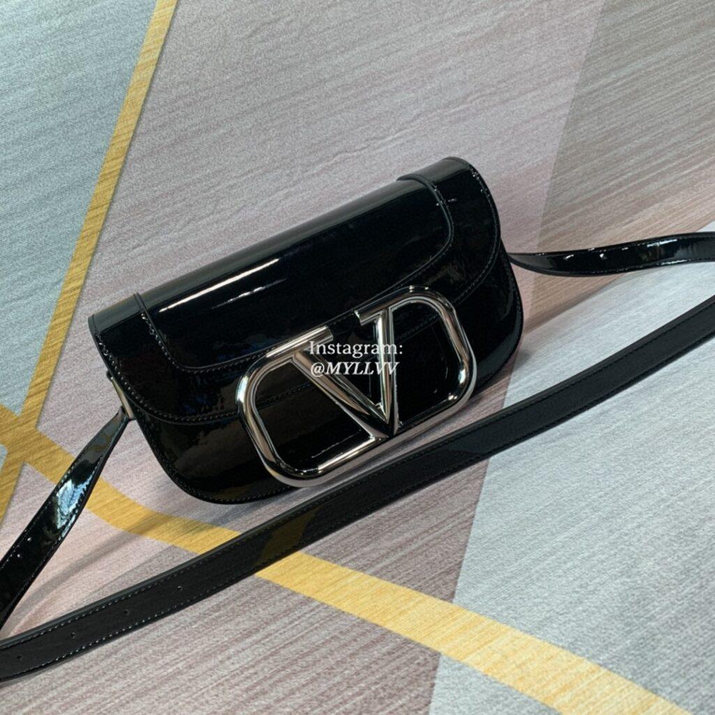 Top Quality Version:MYLLVV » Valentino Garavani Supervee Patent Leather Shoulder Bag Black Silver 0109L