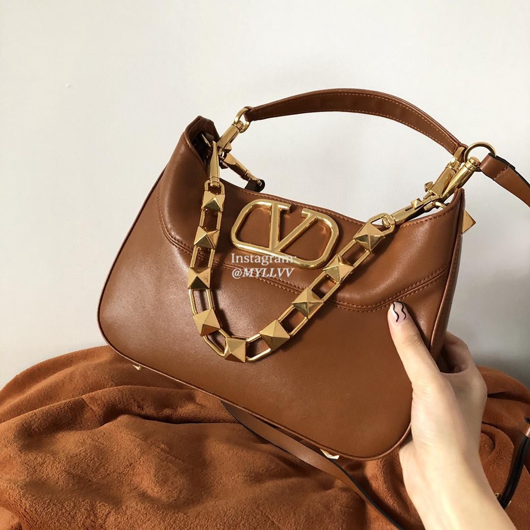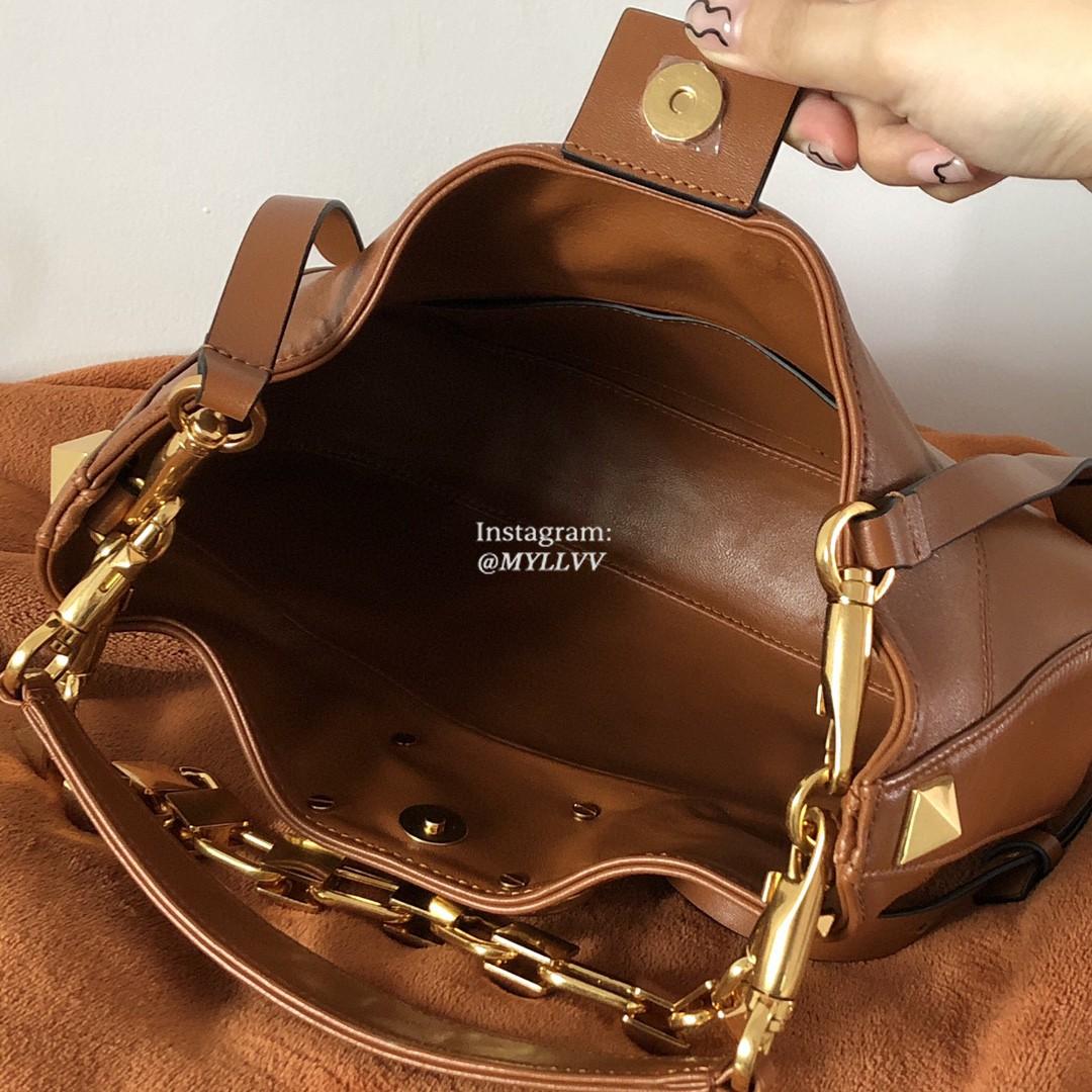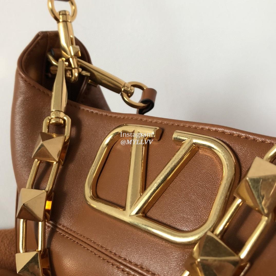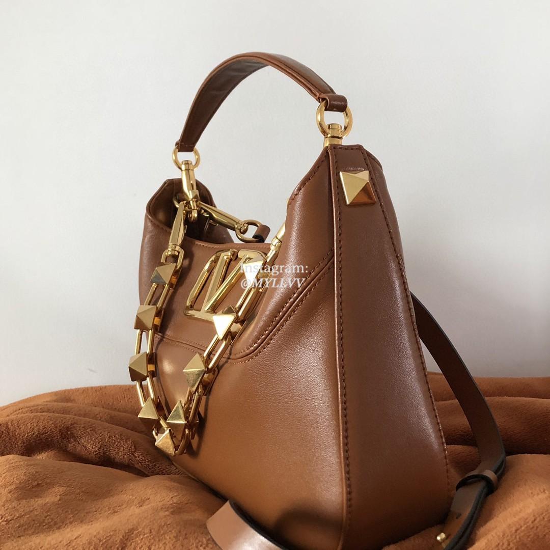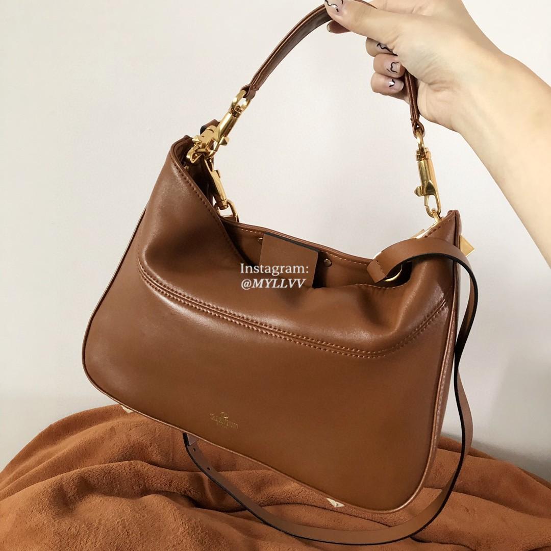 Dimension: 28.0 × 22.0 × 8.0 cm Top Quality Version:MYLLVV » Valentino Garavani V Logo Cowhide Hobo Bag Brown 2036