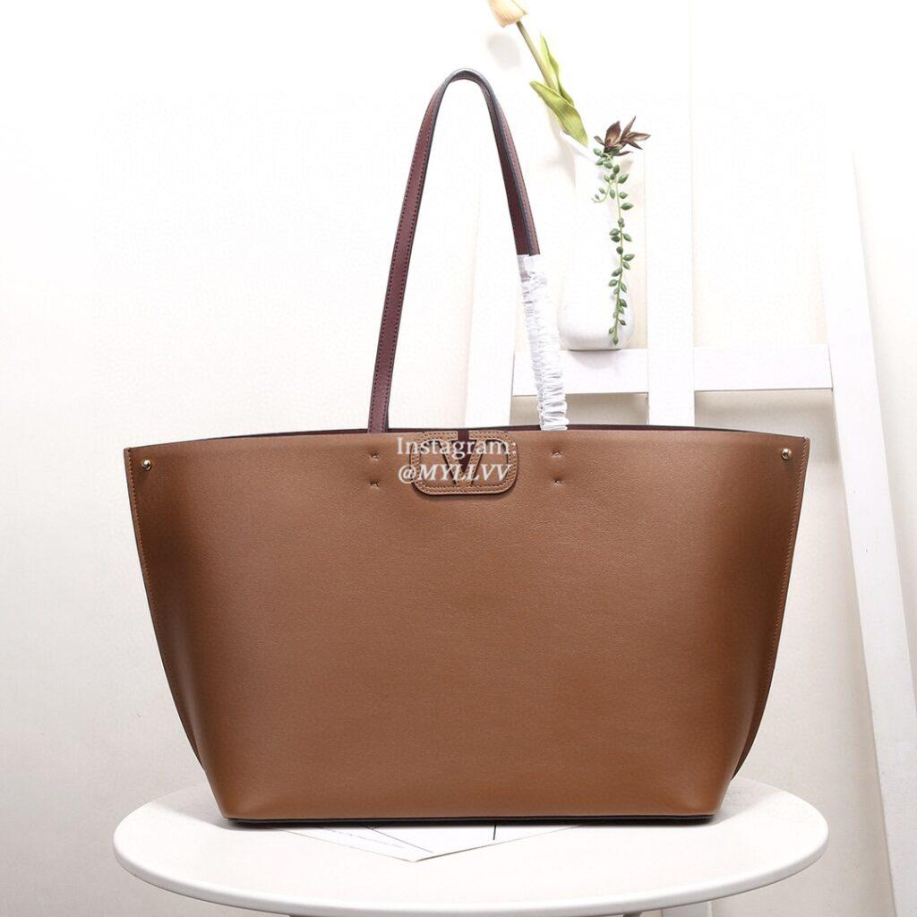 Top Quality Version:MYLLVV » Valentino Garavani V Logo Cowhide Large Shopping Bag Brown 4880