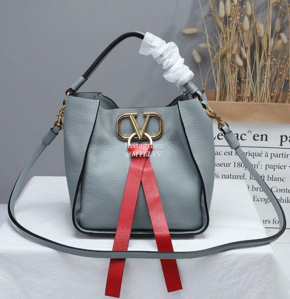 Top Quality Version:MYLLVV » Valentino Garavani V Logo Cowhide Shoulder Bag Water Blue 1913
