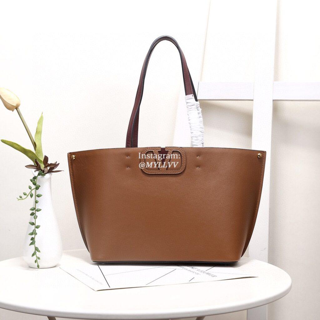 Top Quality Version:MYLLVV » Valentino Garavani V Logo Cowhide Small Shopping Bag Brown 4880S