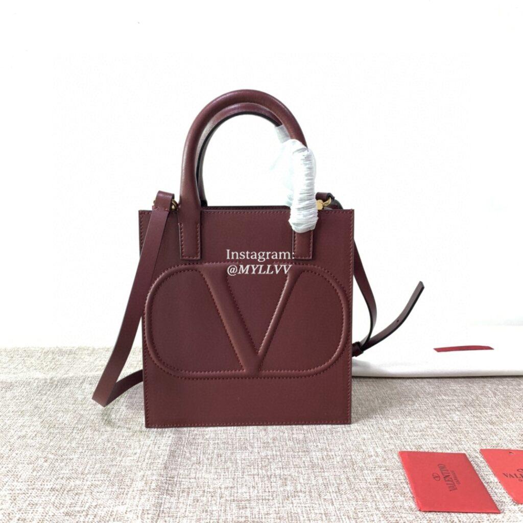 Top Quality Version:MYLLVV » Valentino Garavani V Logo Walk Cowhide Tote Bag Rose Red 2022S