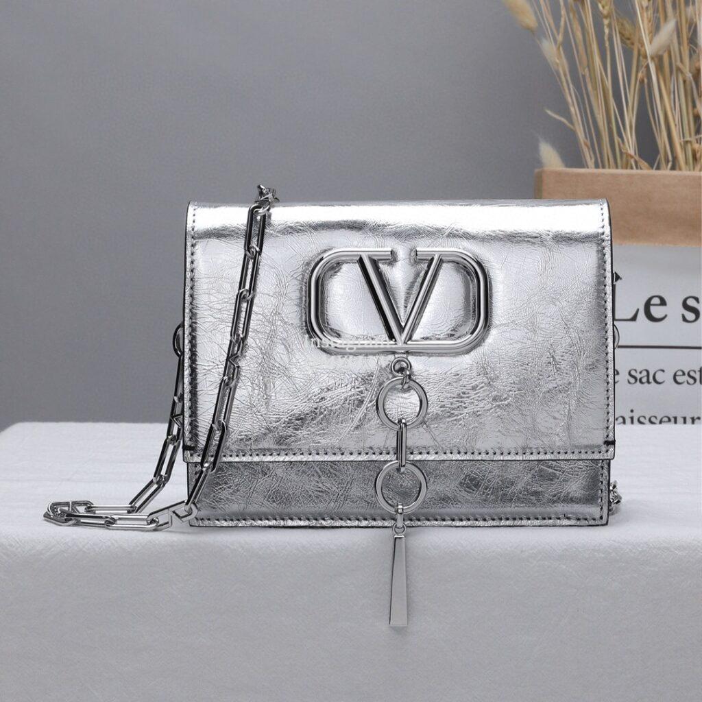 Top Quality Version:MYLLVV » Valentino Garavani Vcase Oil Wax Cowhide Shoulder Bag Silver 1927S