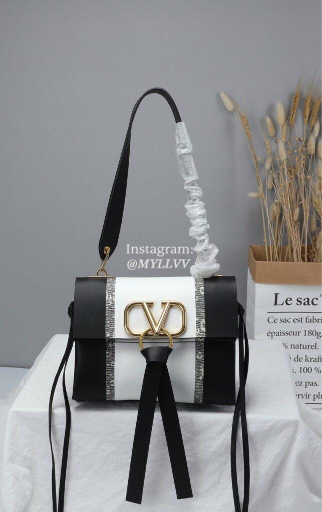 Top Quality Version:MYLLVV » Valentino Garavani Vring Cowhide Medium Shoulder Bag White Black 1901