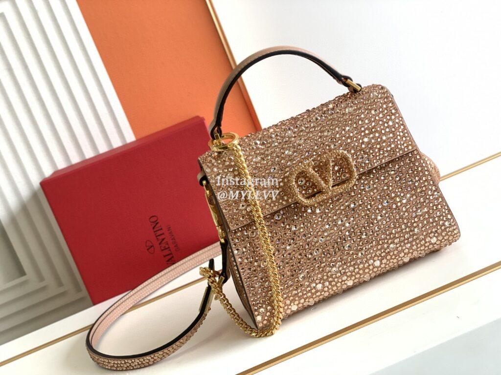 Top Quality Version:MYLLVV » Valentino Garavani Vsling All Diamond Cowhide Handle Shoulder Bag Pink 1996