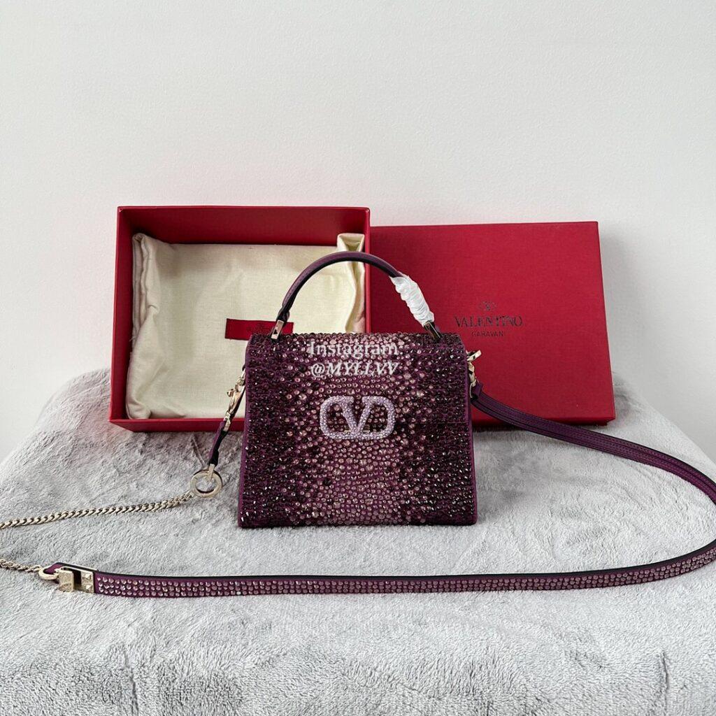 Top Quality Version:MYLLVV » Valentino Garavani Vsling All Diamond Cowhide Handle Shoulder Bag Purple 1996