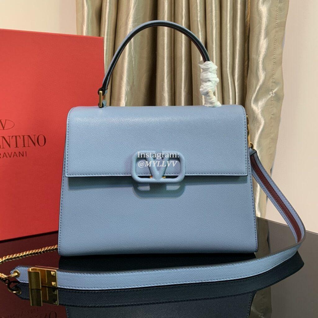Top Quality Version:MYLLVV » Valentino Garavani Vsling Cowhide V Logo Handle Shoulder Bag Blue 0082L