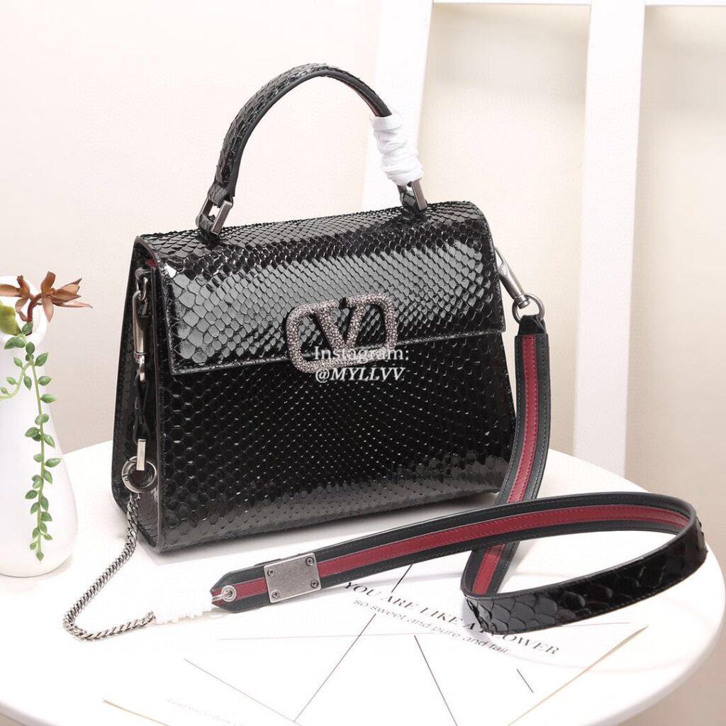 Top Quality Version:MYLLVV » Valentino Garavani Vsling Snake Skin Handle Shoulder Bag Black 1995S