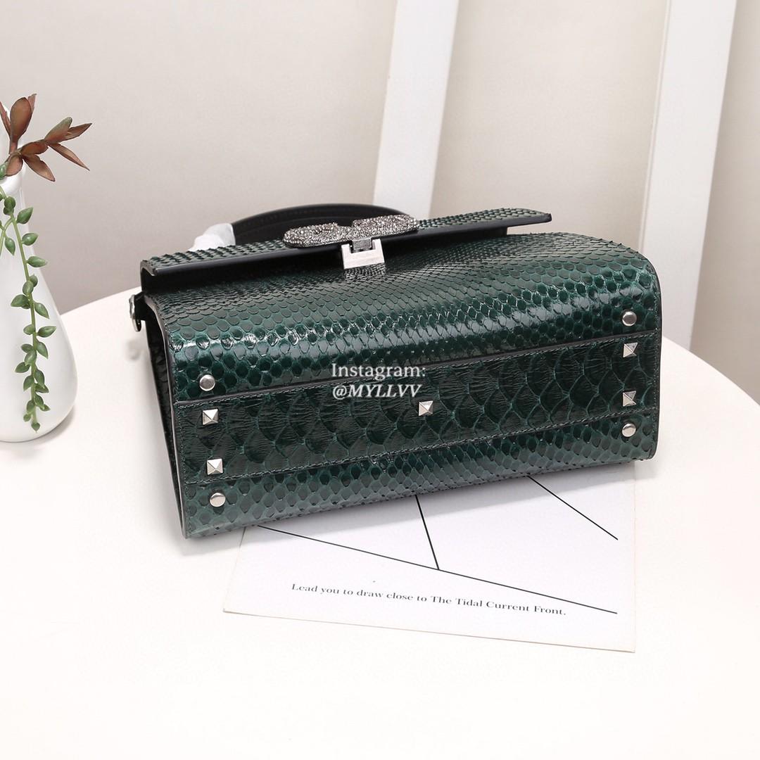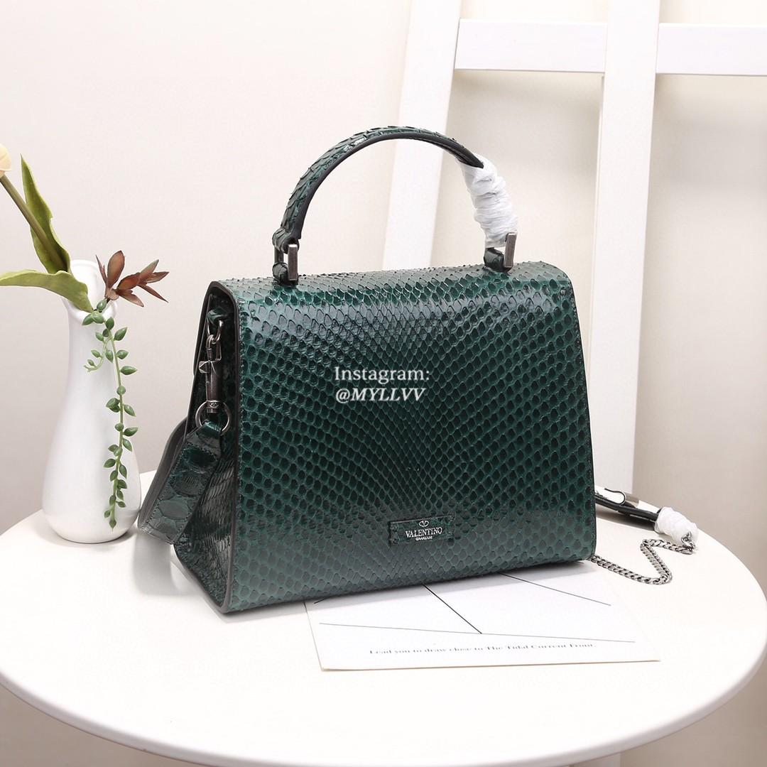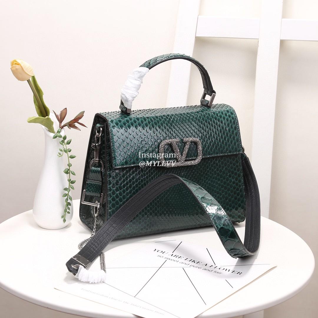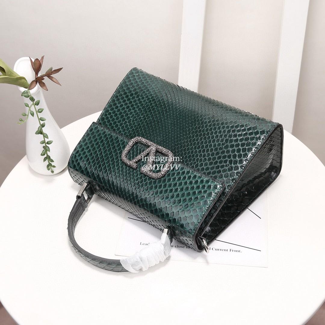 Top Quality Version:MYLLVV » Valentino Garavani Vsling Snake Skin Handle Shoulder Bag Green 1995S