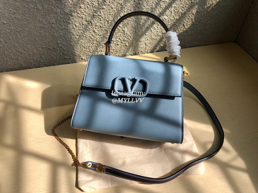 Top Quality Version:MYLLVV » Valentino Garavani Vsling V Logo Cowhide Handle Bag Blue 0530S