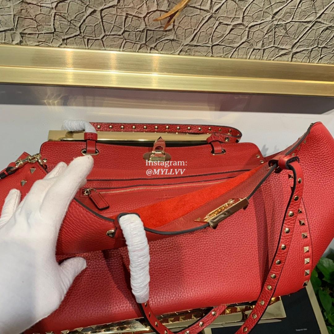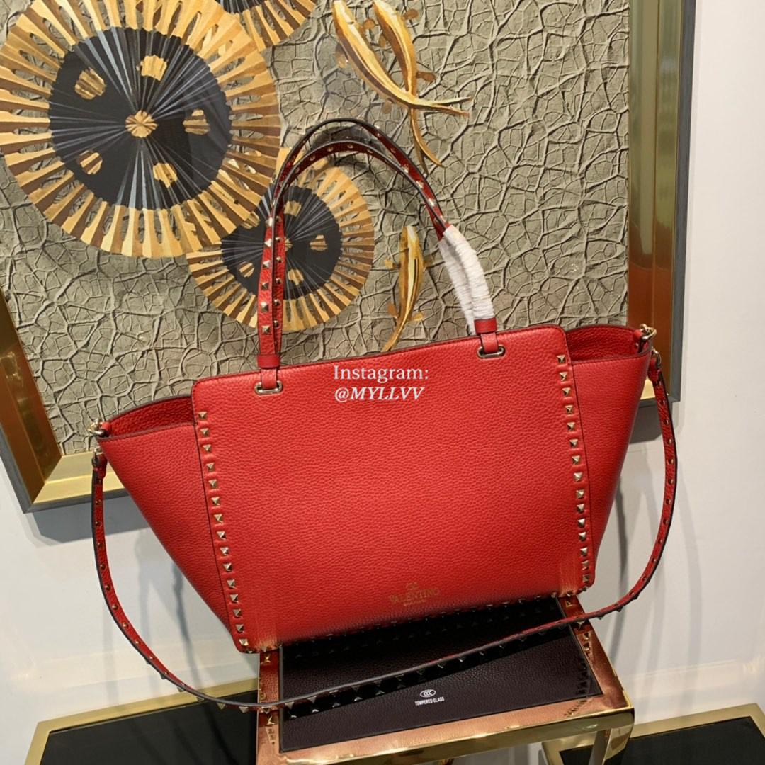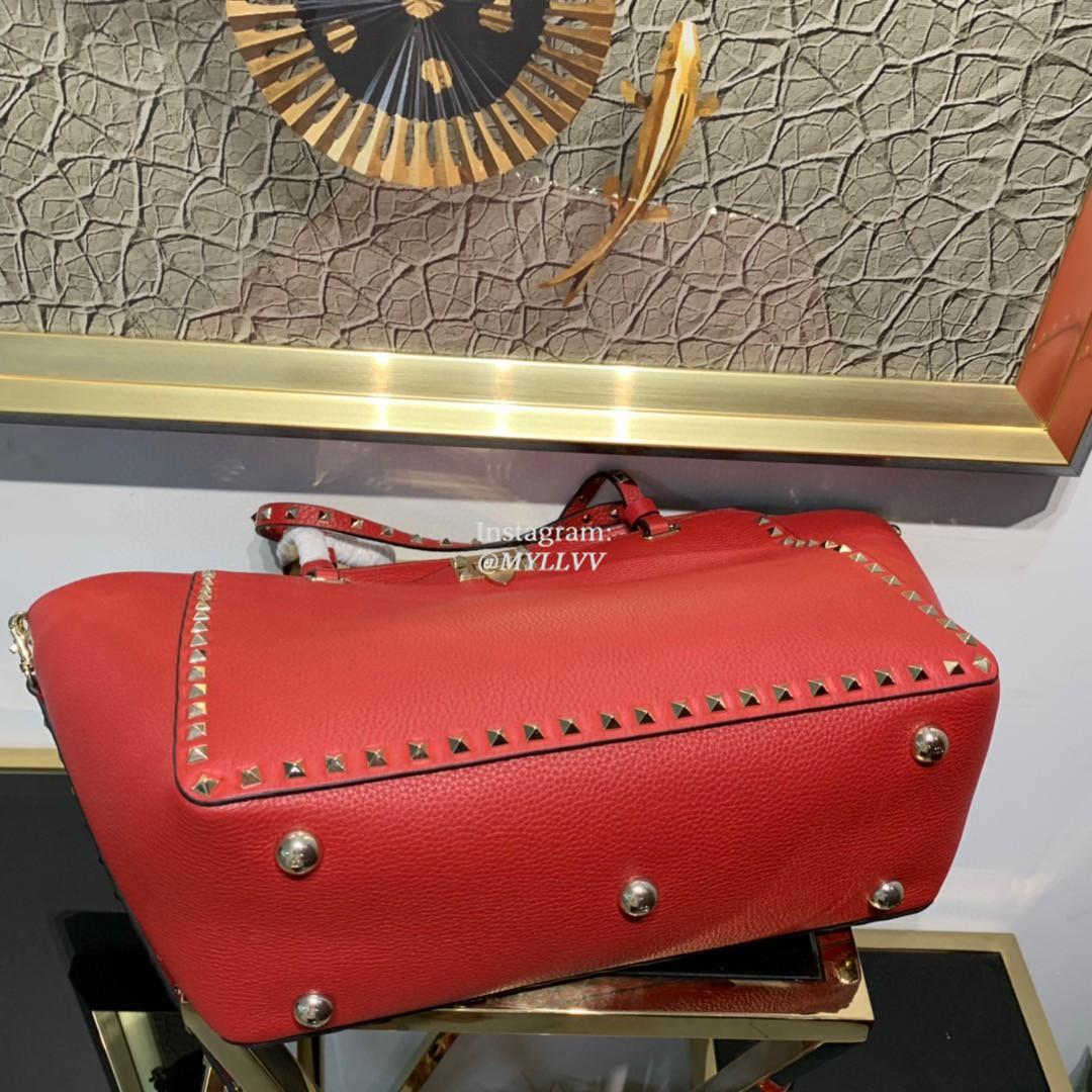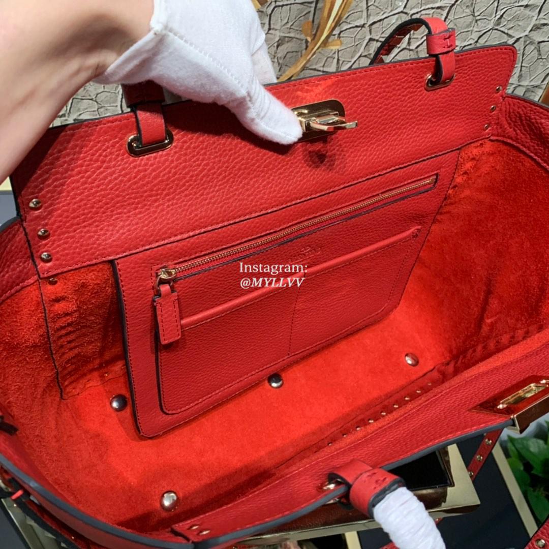 Dimension: 33.0 × 26.0 × 14.0 cm Top Quality Version:MYLLVV » Valentino Gold Rivet Cowhide Handle Shoulder Bag Red 0970