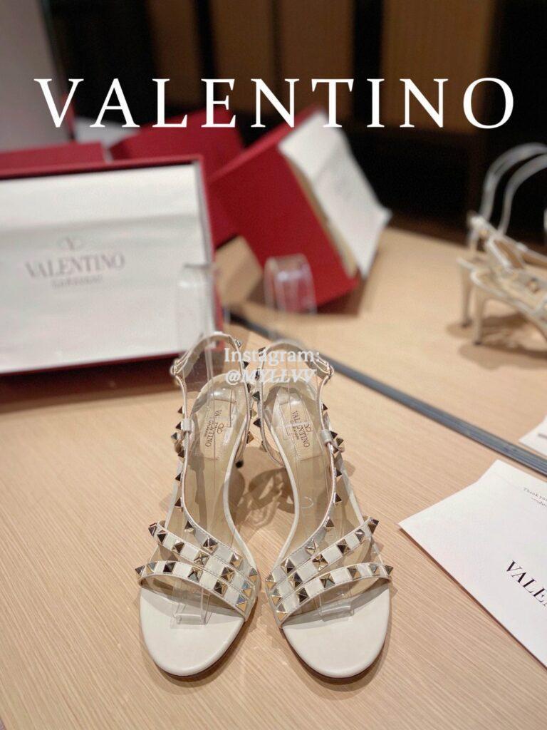 Top Quality Version:MYLLVV » Valentino Gold Rivet Cowhide High Heel Sandal Shoe White