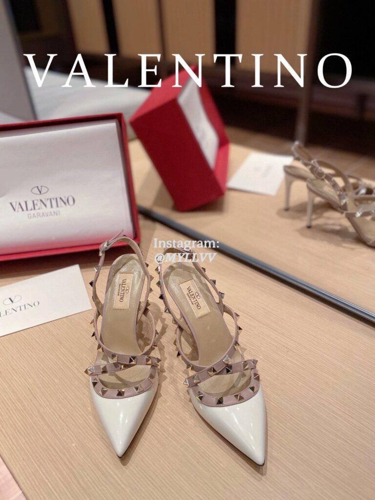 Top Quality Version:MYLLVV » Valentino Gold Rivet Cowhide High Heel Sandal Shoe White Pink