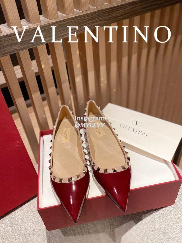 Top Quality Version:MYLLVV » Valentino Gold Rivet Patent Leather Flat Sandal Shoe Wine Red