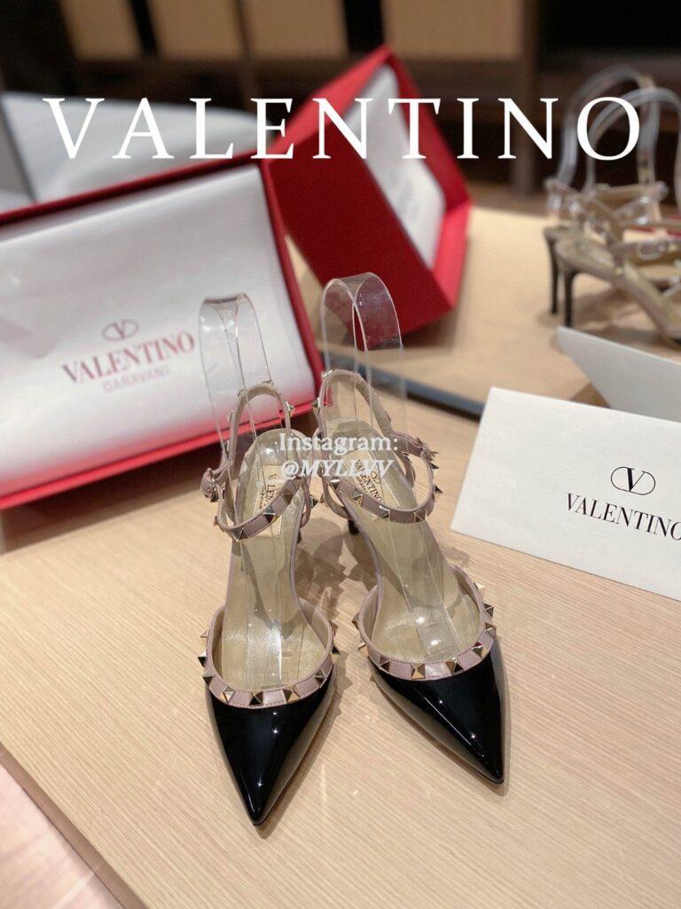 Top Quality Version:MYLLVV » Valentino Gold Rivet Cowhide High Heel Sandal Shoe Black Pink