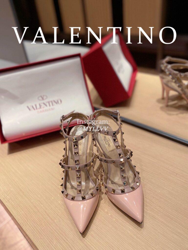 Top Quality Version:MYLLVV » Valentino Gold Rivet Patent Leather High Heel Sandal Shoe Pink
