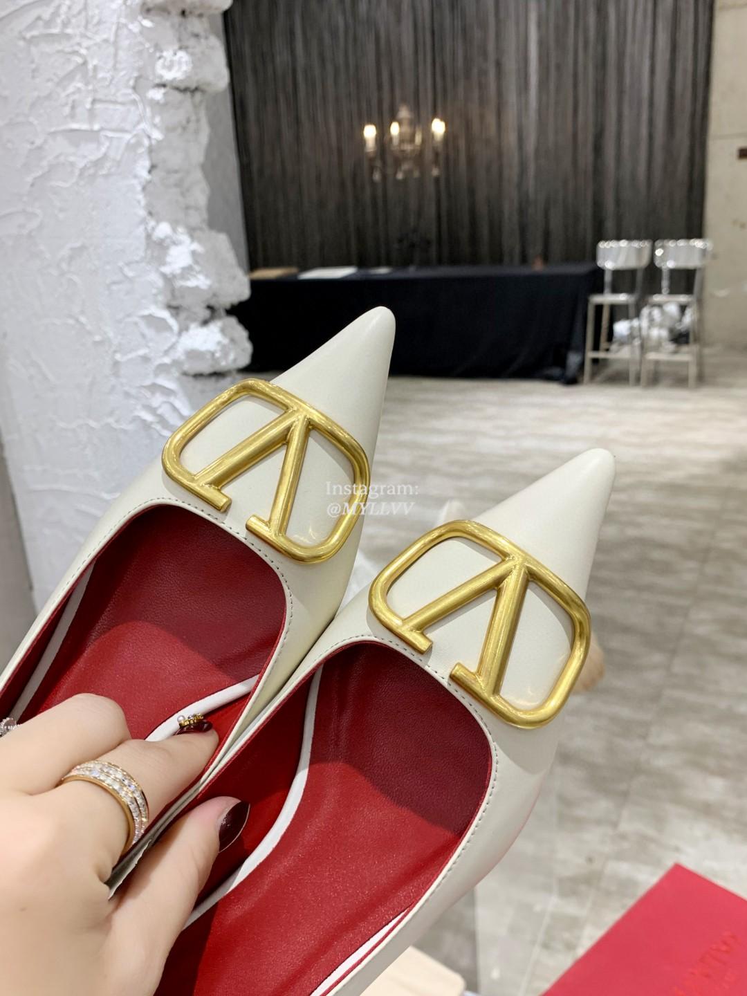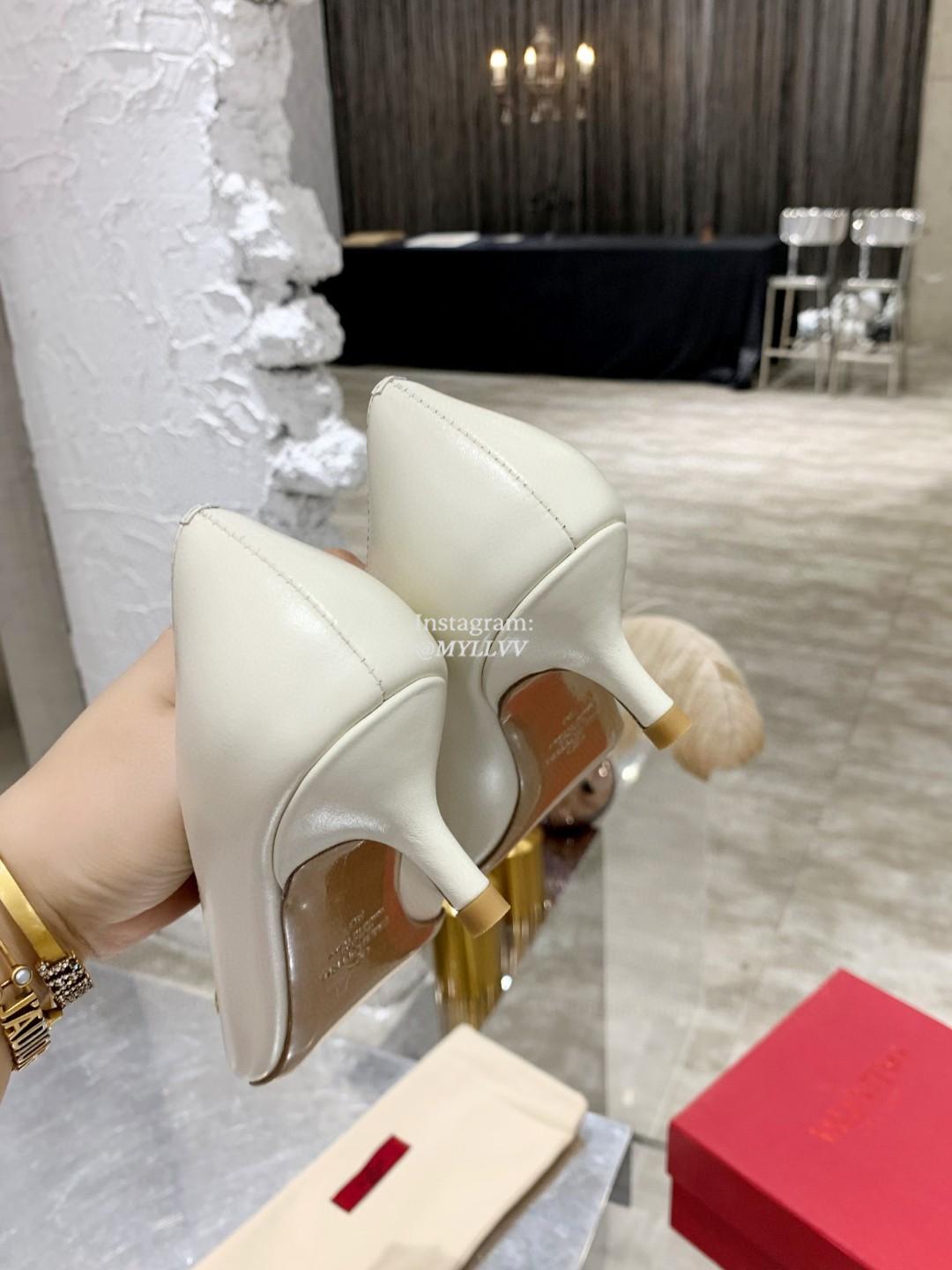 EU Size : 35 – 41Heel Height: 4.5 cm Top Quality Version:MYLLVV » Valentino Gold V Cowhide High Heel Shoe White Red