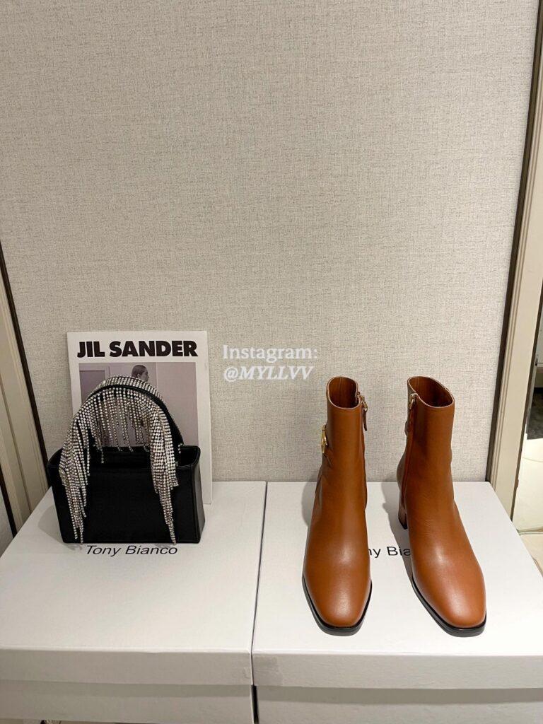 Top Quality Version:MYLLVV » Valentino Gold V Cowhide Zipper High Heel Short Boot Caramel