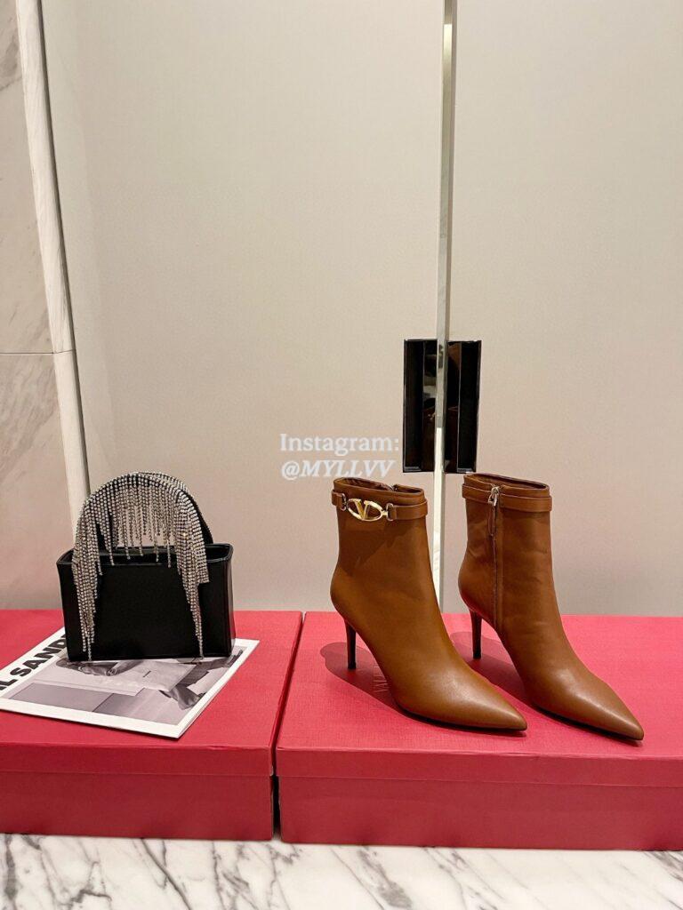 Top Quality Version:MYLLVV » Valentino Gold V Cowhide Zipper High Heel Short Boot Caramel