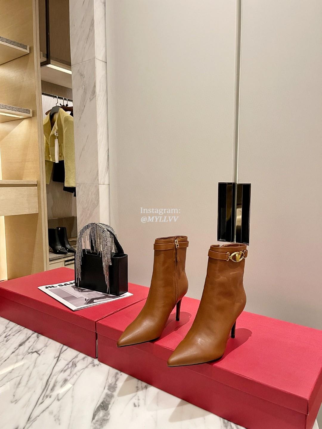 Top Quality Version:MYLLVV » Valentino Gold V Cowhide Zipper High Heel Short Boot Caramel
