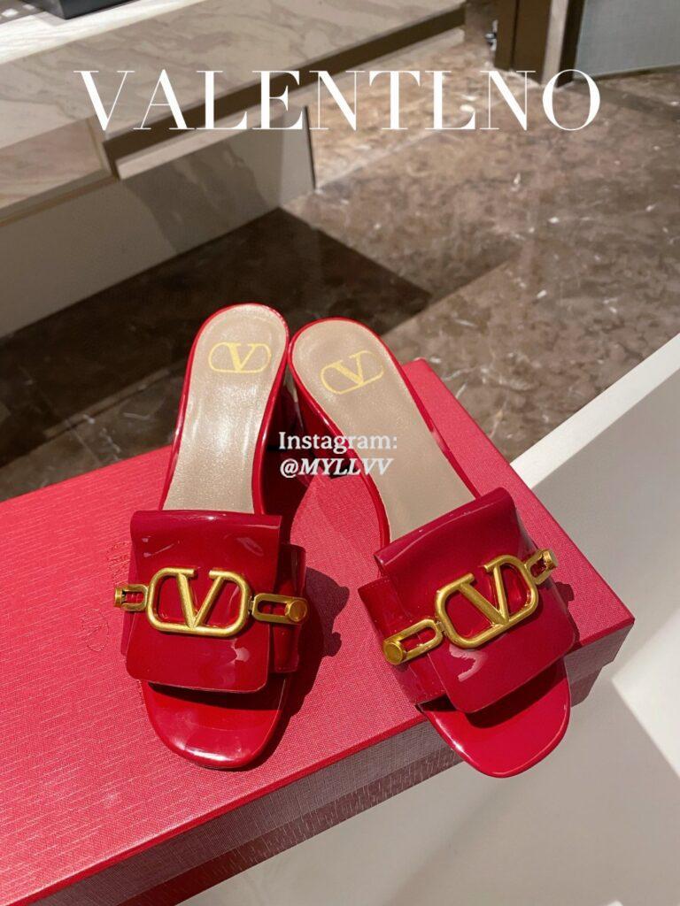 Top Quality Version:MYLLVV » Valentino Gold V Patent Leather High Heel Sandal Shoe Red