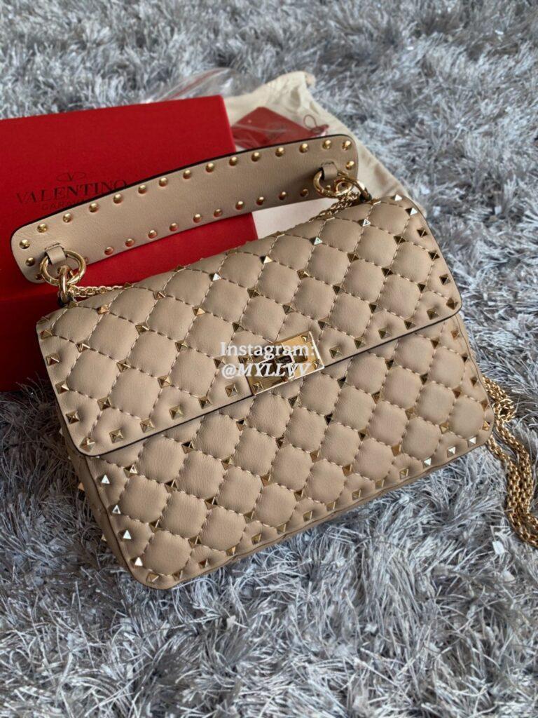 Top Quality Version:MYLLVV » Valentino Lambskin All Rivet Handle Shoulder Bag Apricot 0122B