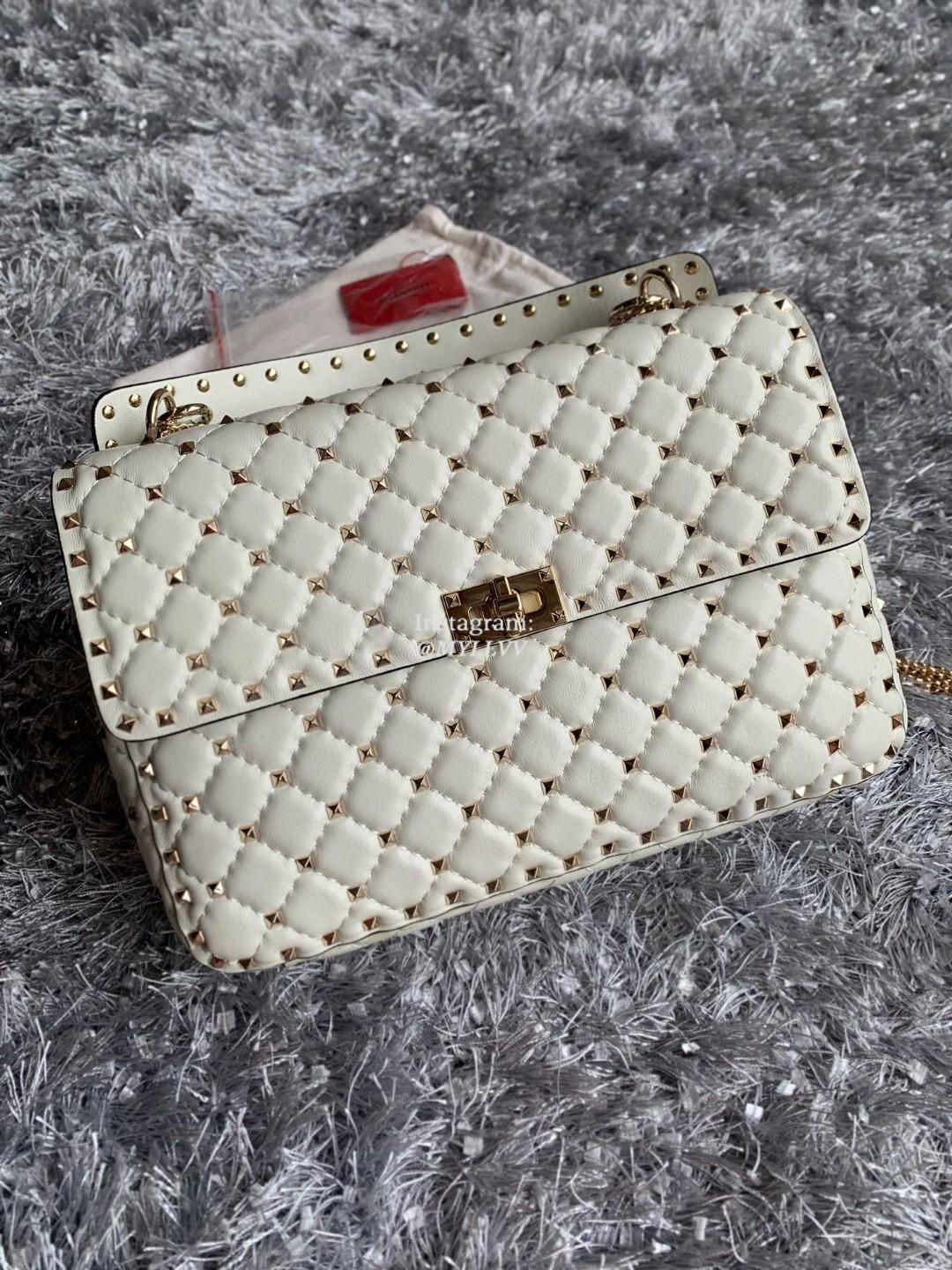 Dimension: 30.0 × 20.0 × 8.5 cm Top Quality Version:MYLLVV » Valentino Lambskin All Rivet Shoulder Bag Grey 0121B
