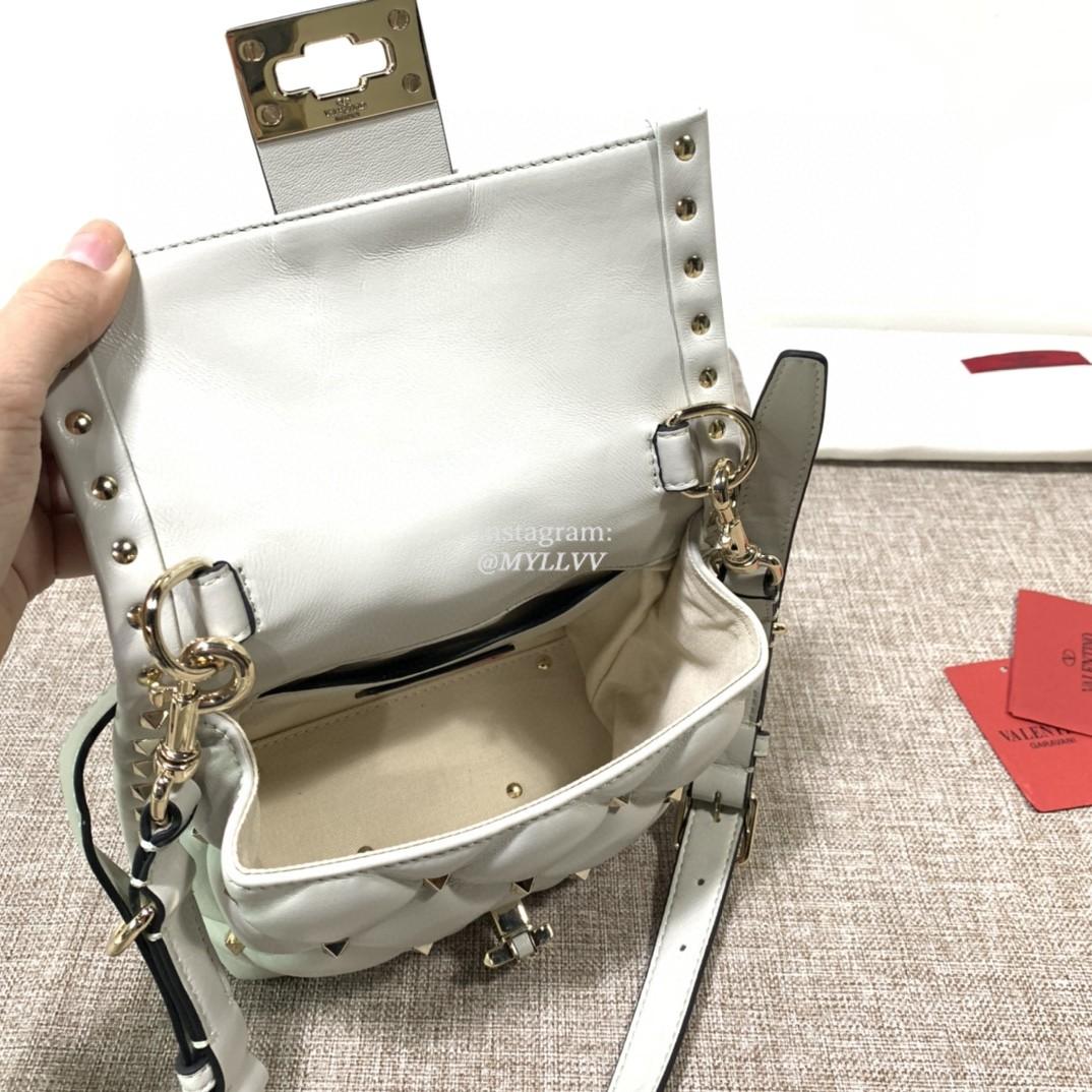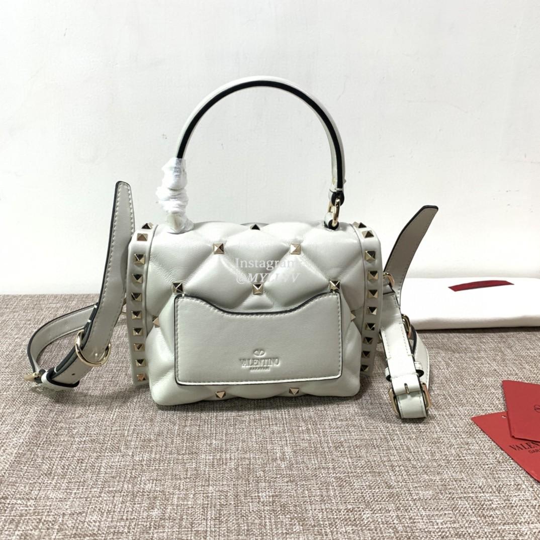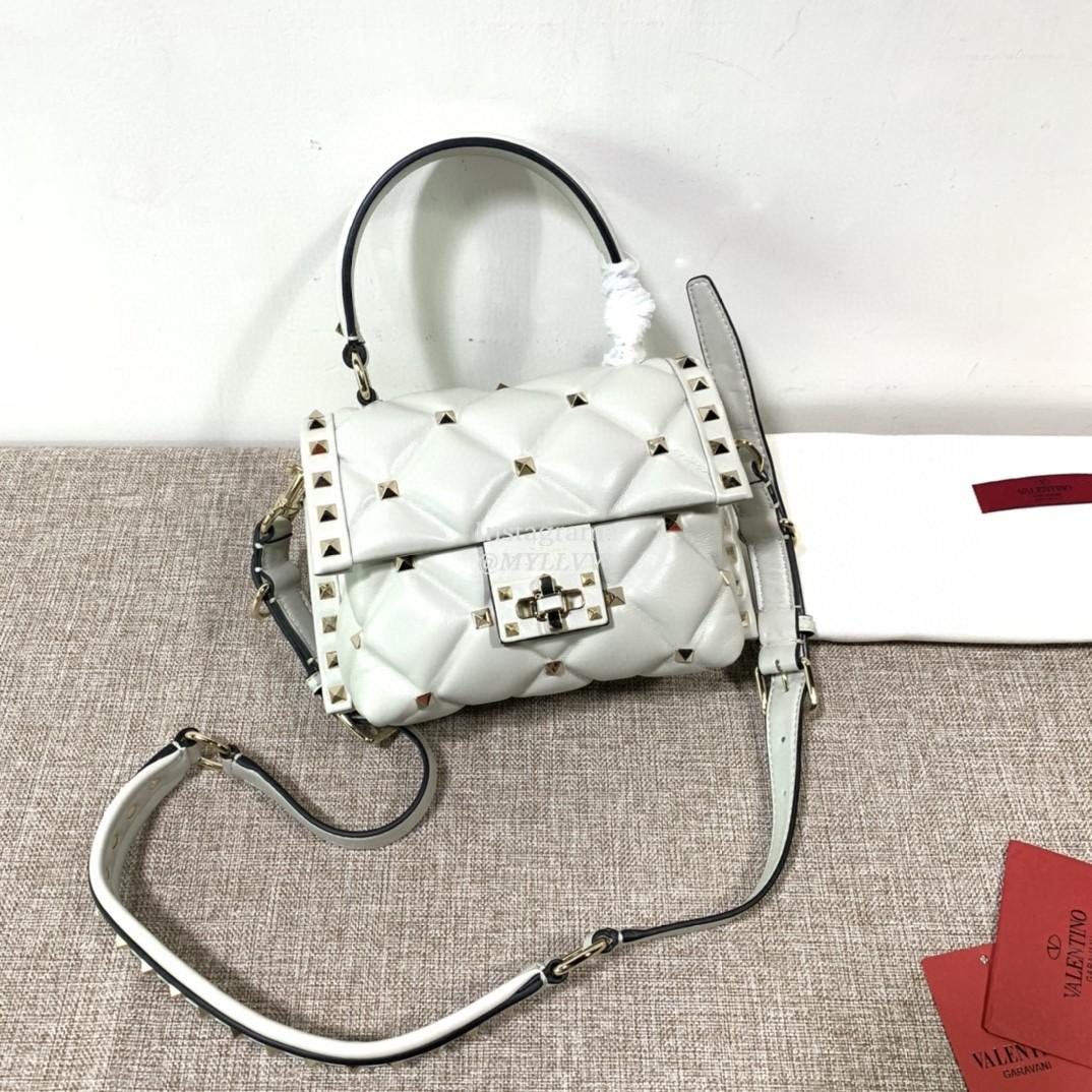 Dimension: 18.0 × 25.0 × 10.0 cm Top Quality Version:MYLLVV » Valentino Lambskin Rivet Handle Shoulder Bag White 0033