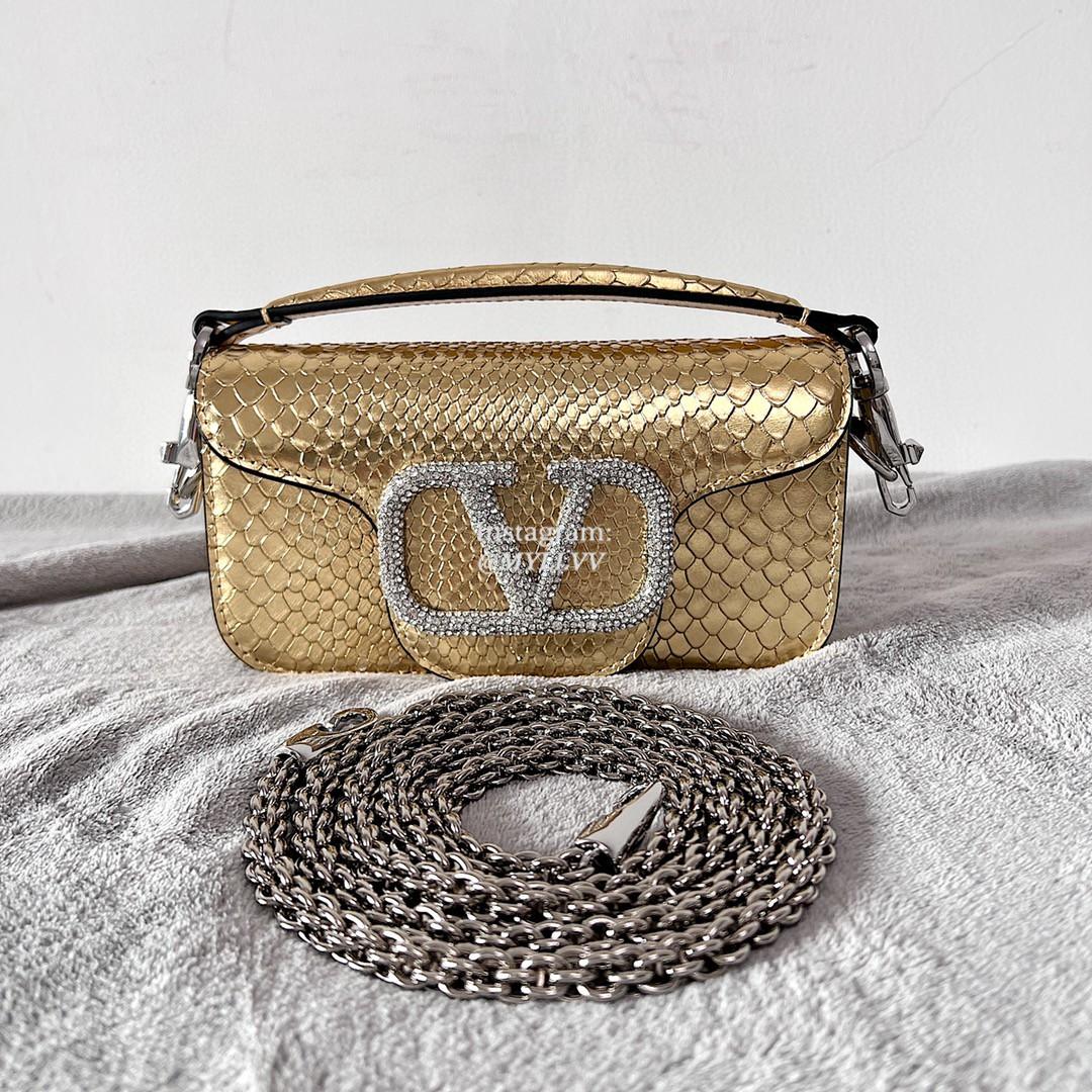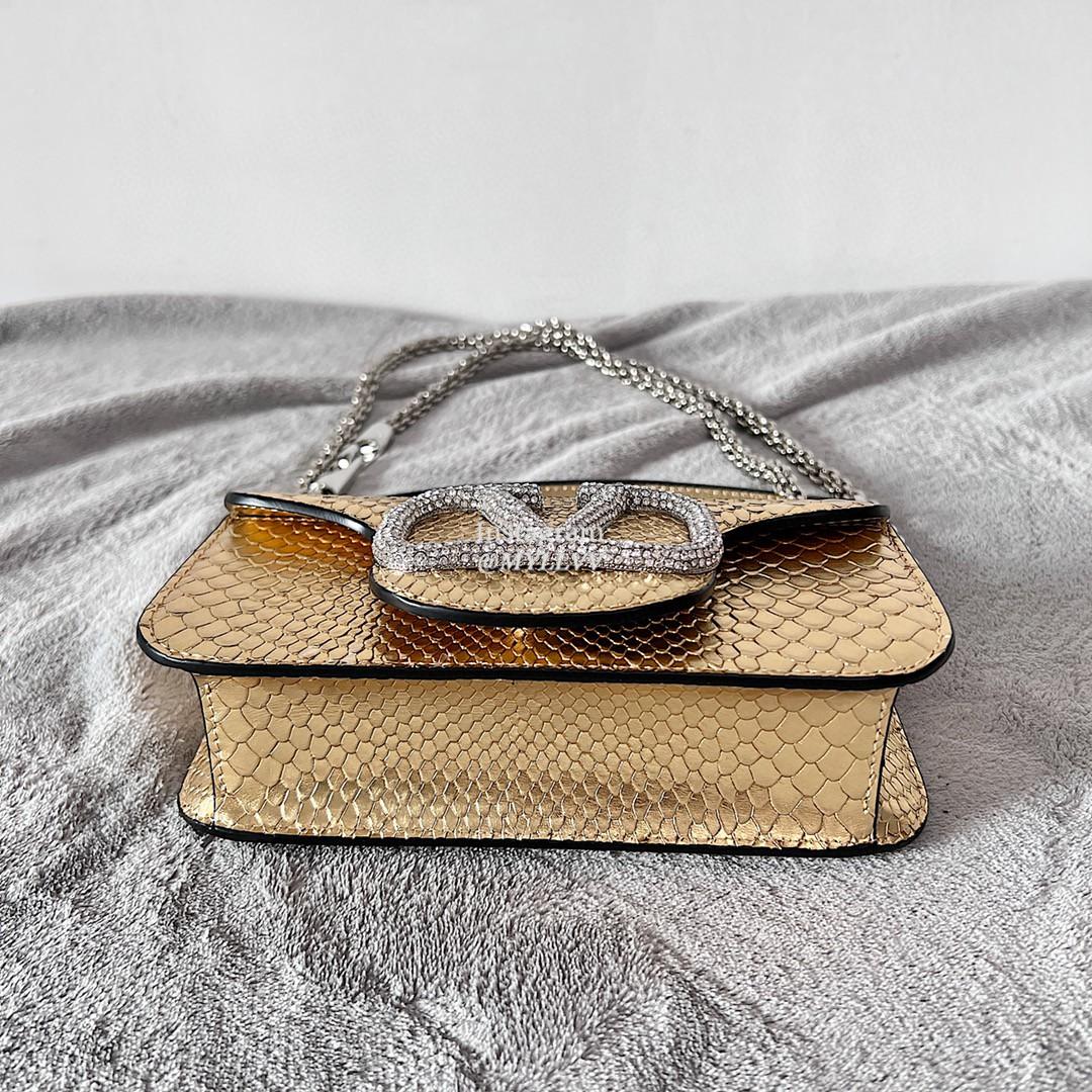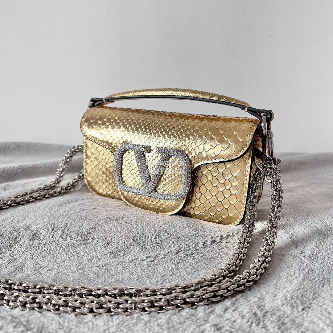 Top Quality Version:MYLLVV » Valentino Snake Skin Diamond V Logo Signature Mini Loco Bag Gold 22011s