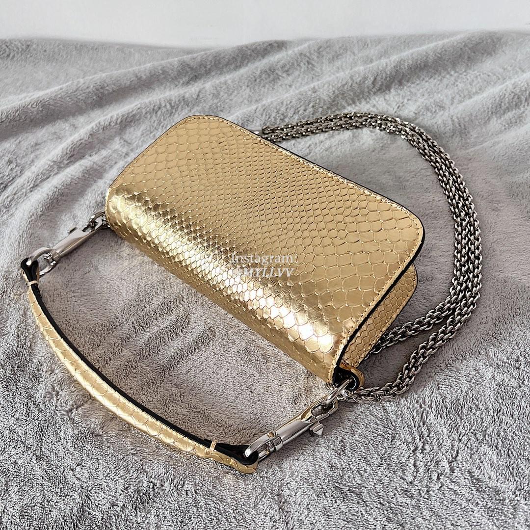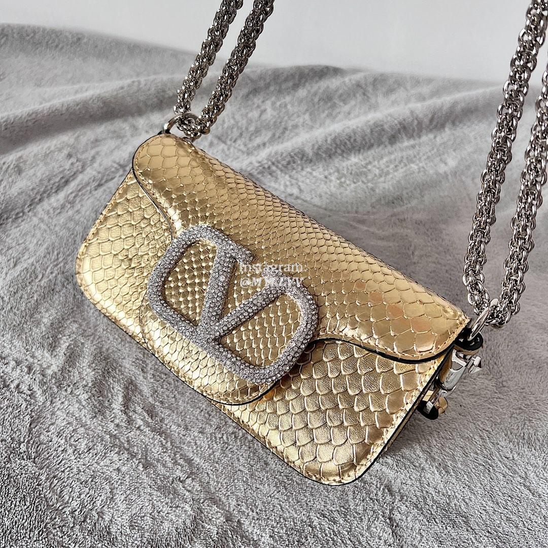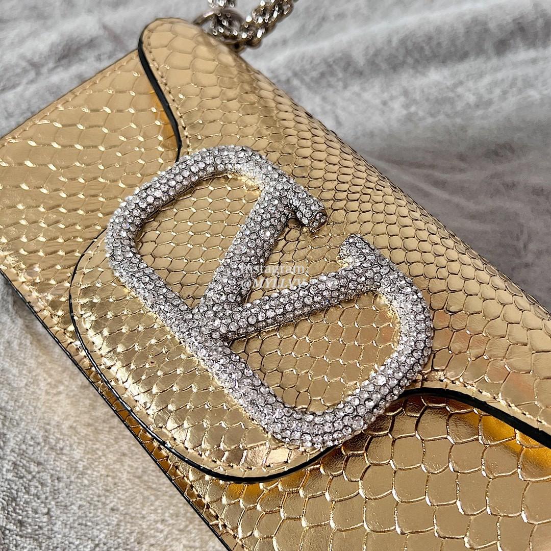 Top Quality Version:MYLLVV » Valentino Snake Skin Diamond V Logo Signature Mini Loco Bag Gold 22011s