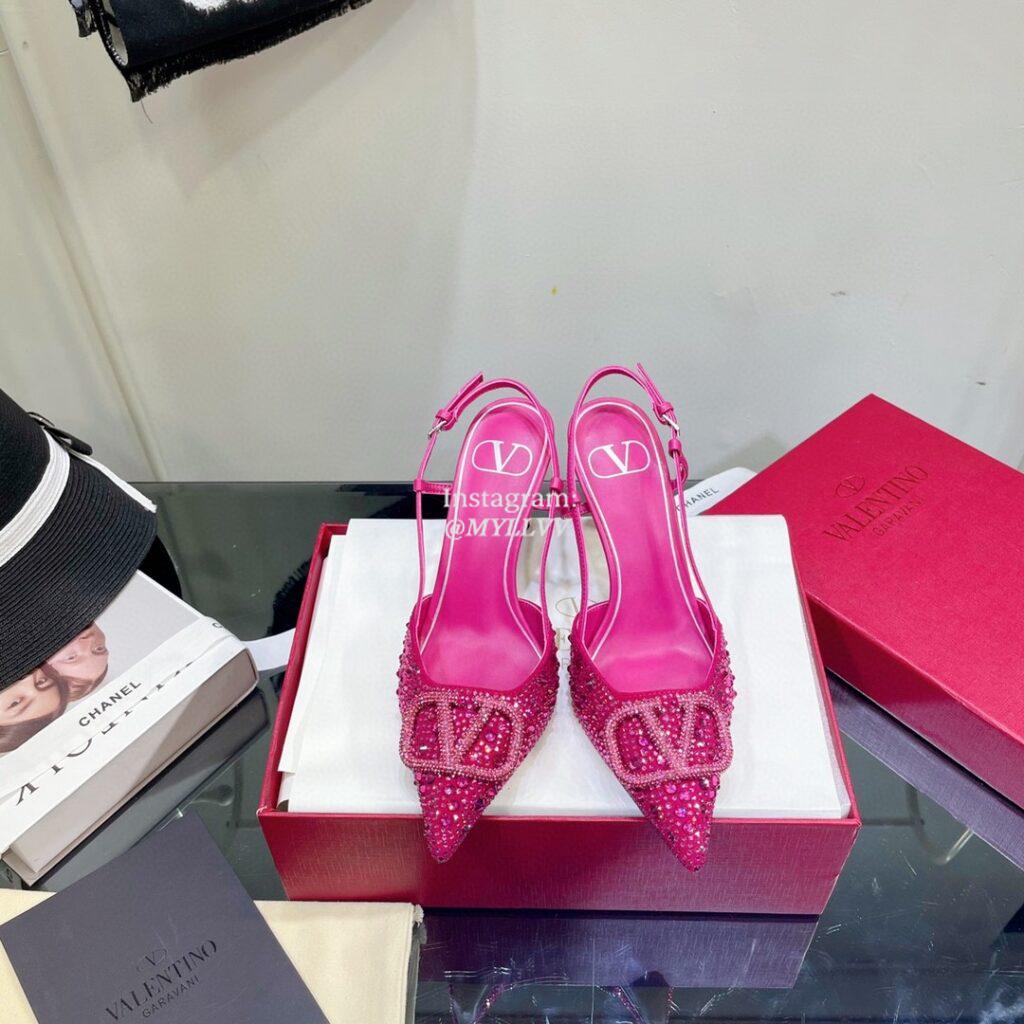 Top Quality Version:MYLLVV » Valentino V Full Diamonds High Heel Sandal Shoe Rose Red