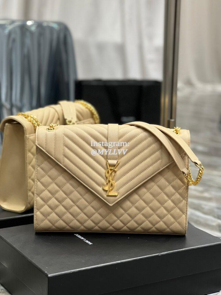 Top Quality Version:MYLLVV » YSL Caviar Cowhide Leather Envelope Large Shoulder Bag Apricot With Gold 487198