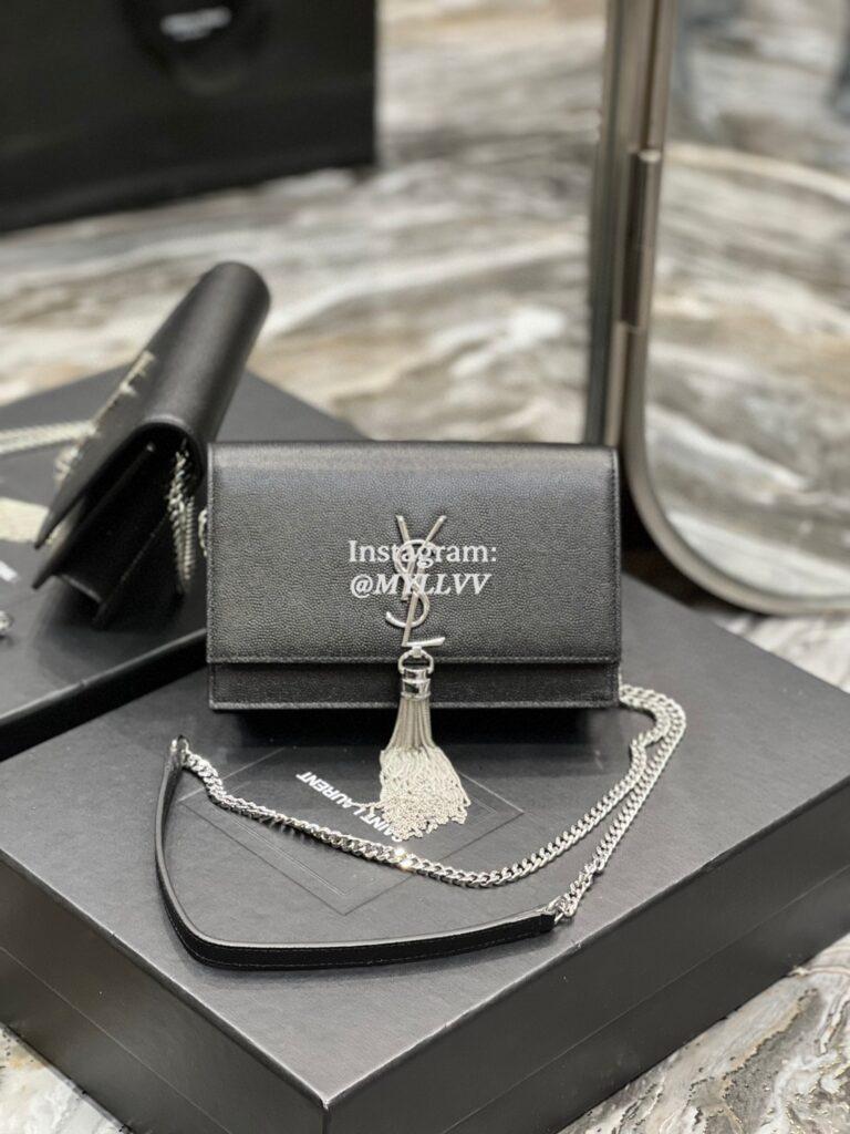 Top Quality Version:MYLLVV » YSL Caviar Cowhide Leather Kate Monogram Shoulder Bag Black With Silver 452159