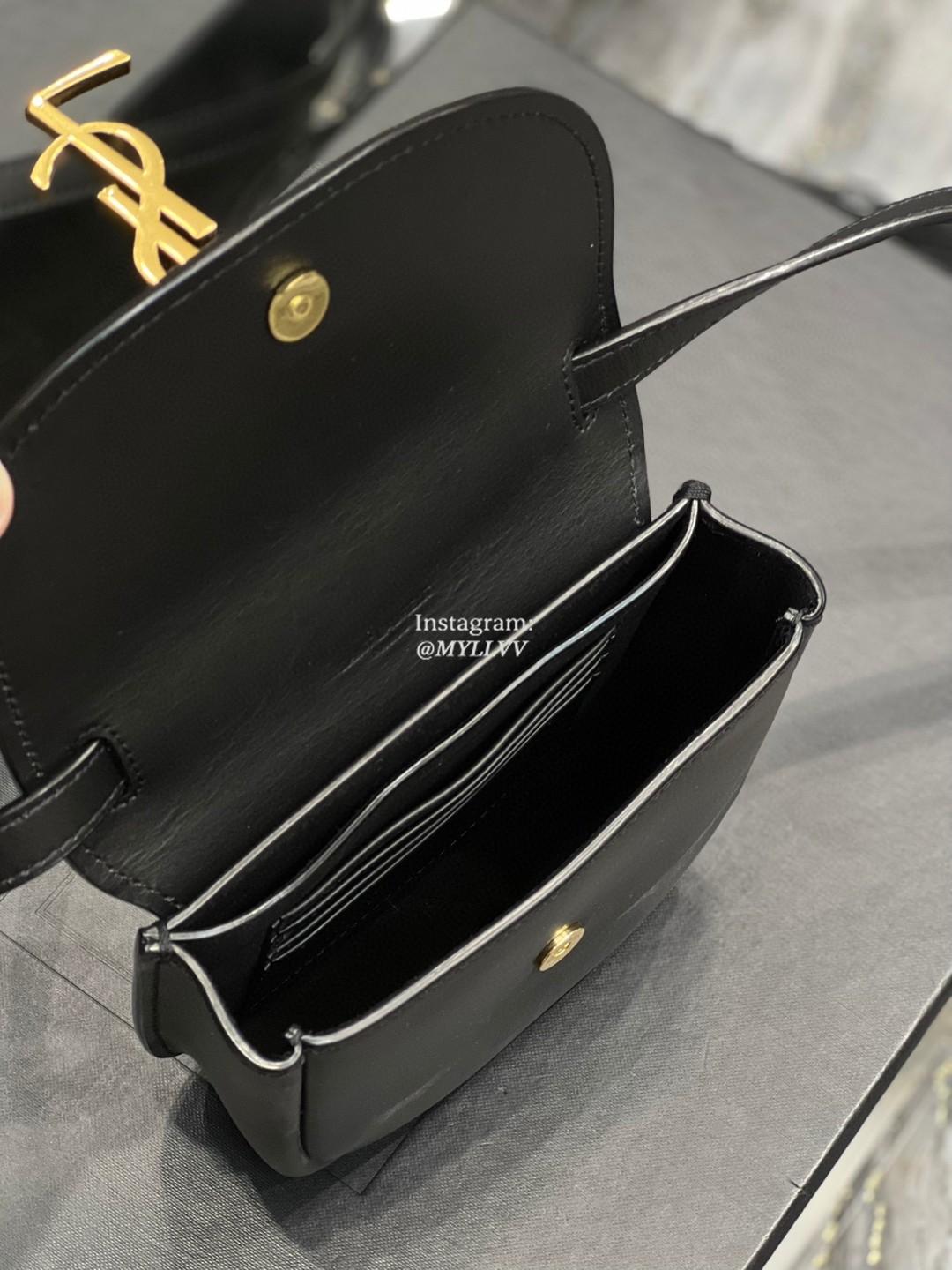 Dimension: 15.0 × 14.0 × 4.5 cm Top Quality Version:MYLLVV » YSL Cowhide Leather Kaia Saddle Bag Black With Gold 623097