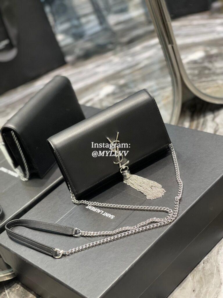Top Quality Version:MYLLVV » YSL Cowhide Leather Kate Monogram Shoulder Bag Black With Silver 452159