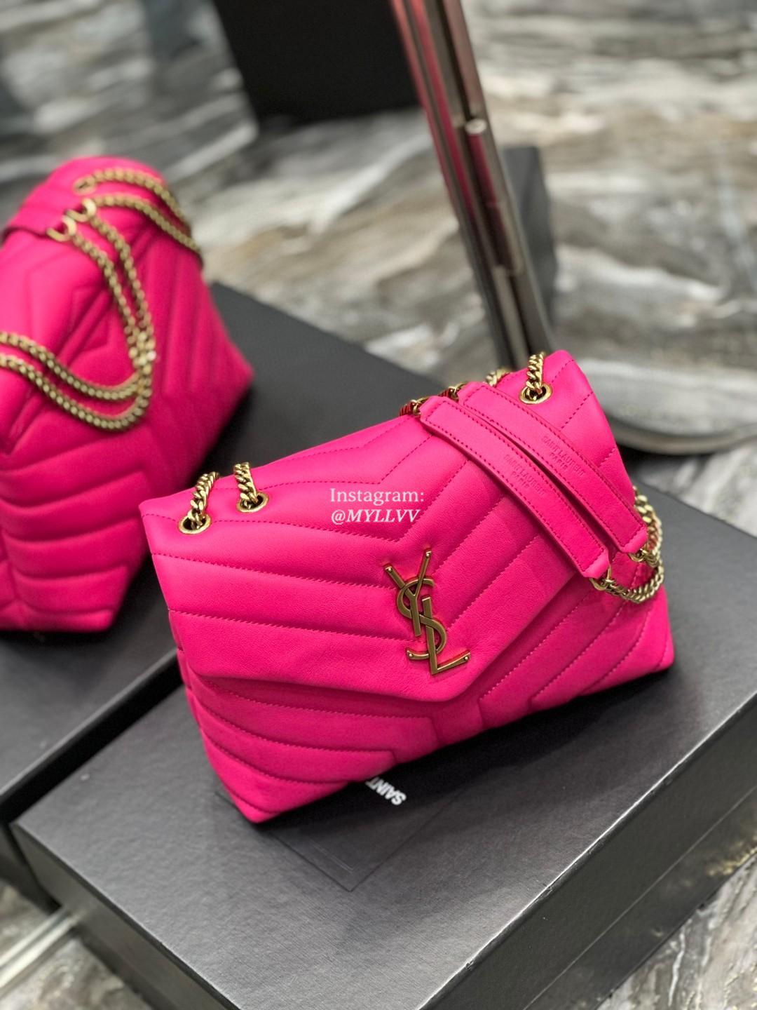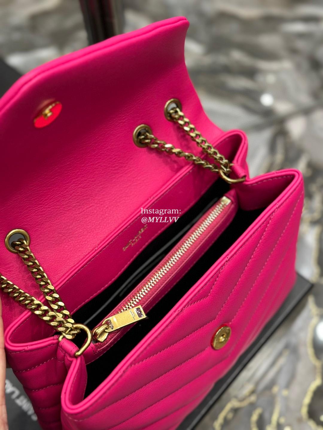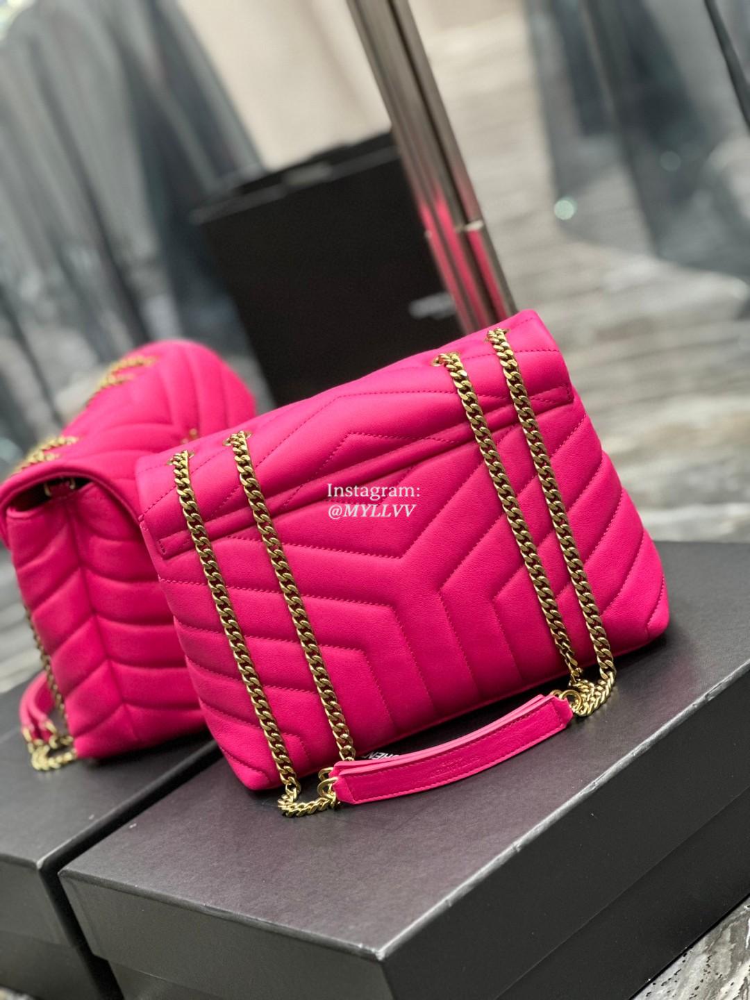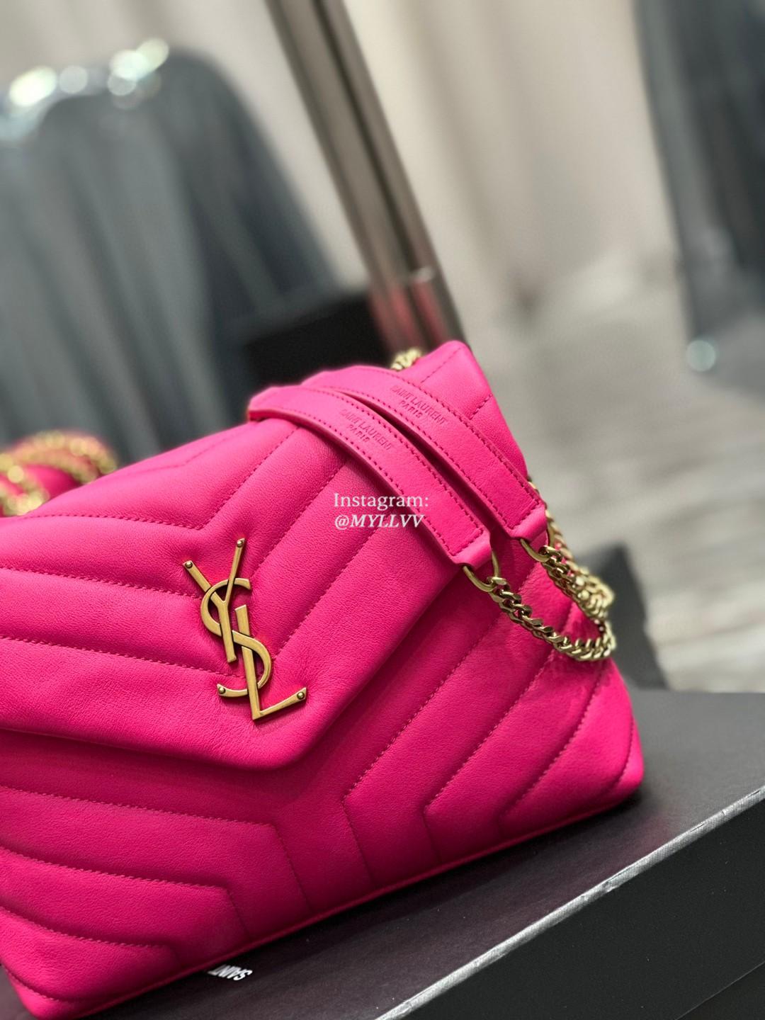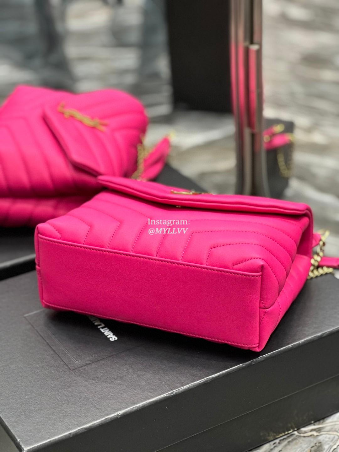 Top Quality Version:MYLLVV » YSL Cowhide Leather Loulou Shoulder Bag Rose Red With Gold 494699