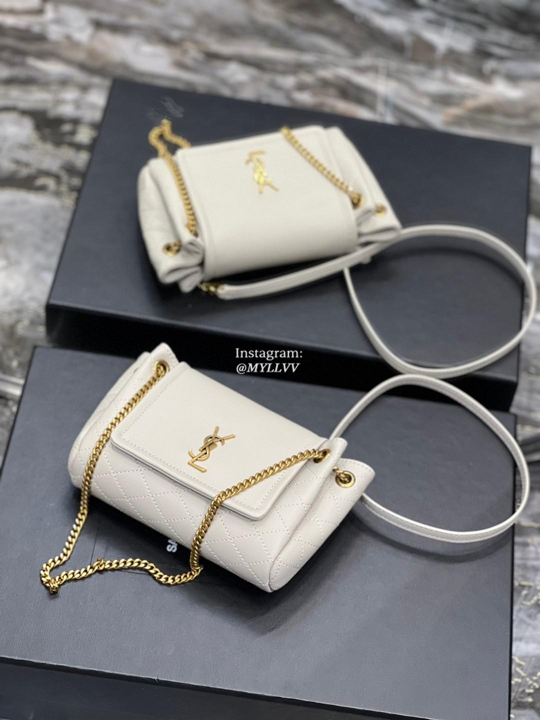 Top Quality Version:MYLLVV » YSL Cowhide Leather Mini Nolita Shoulder Bag White With Gold 672738