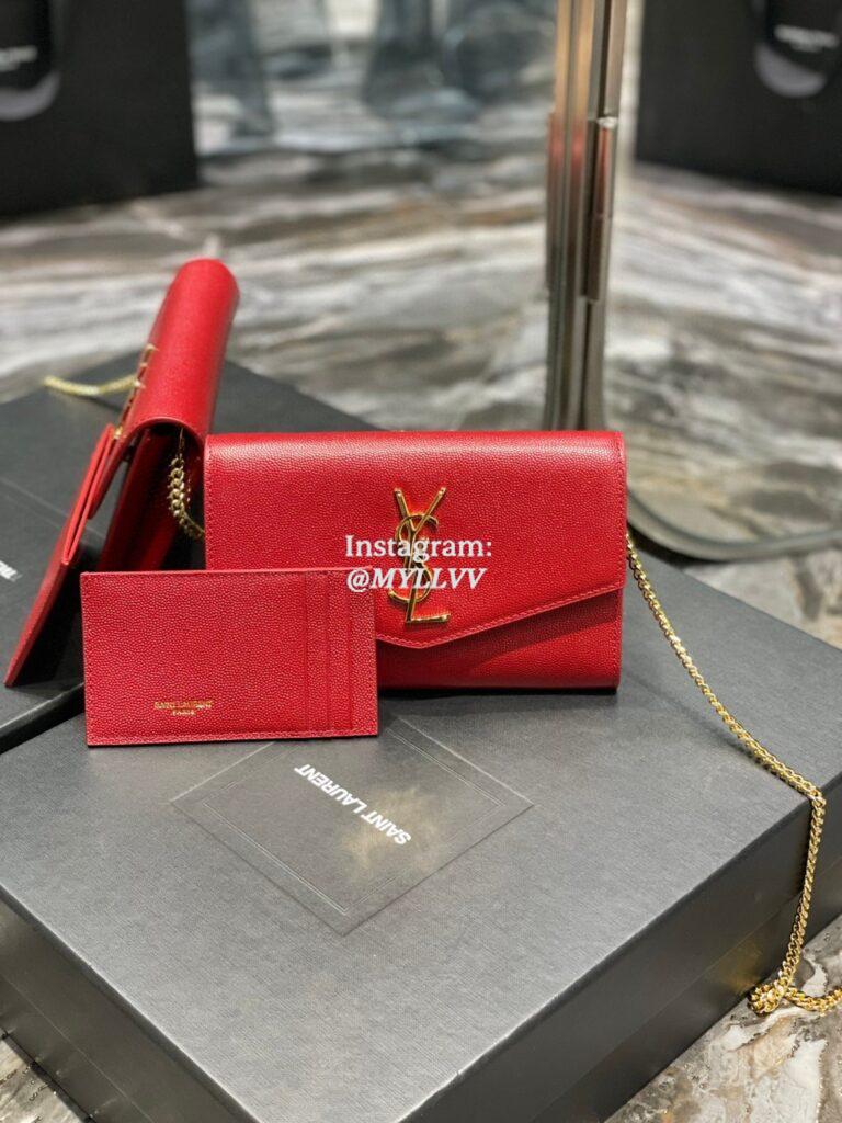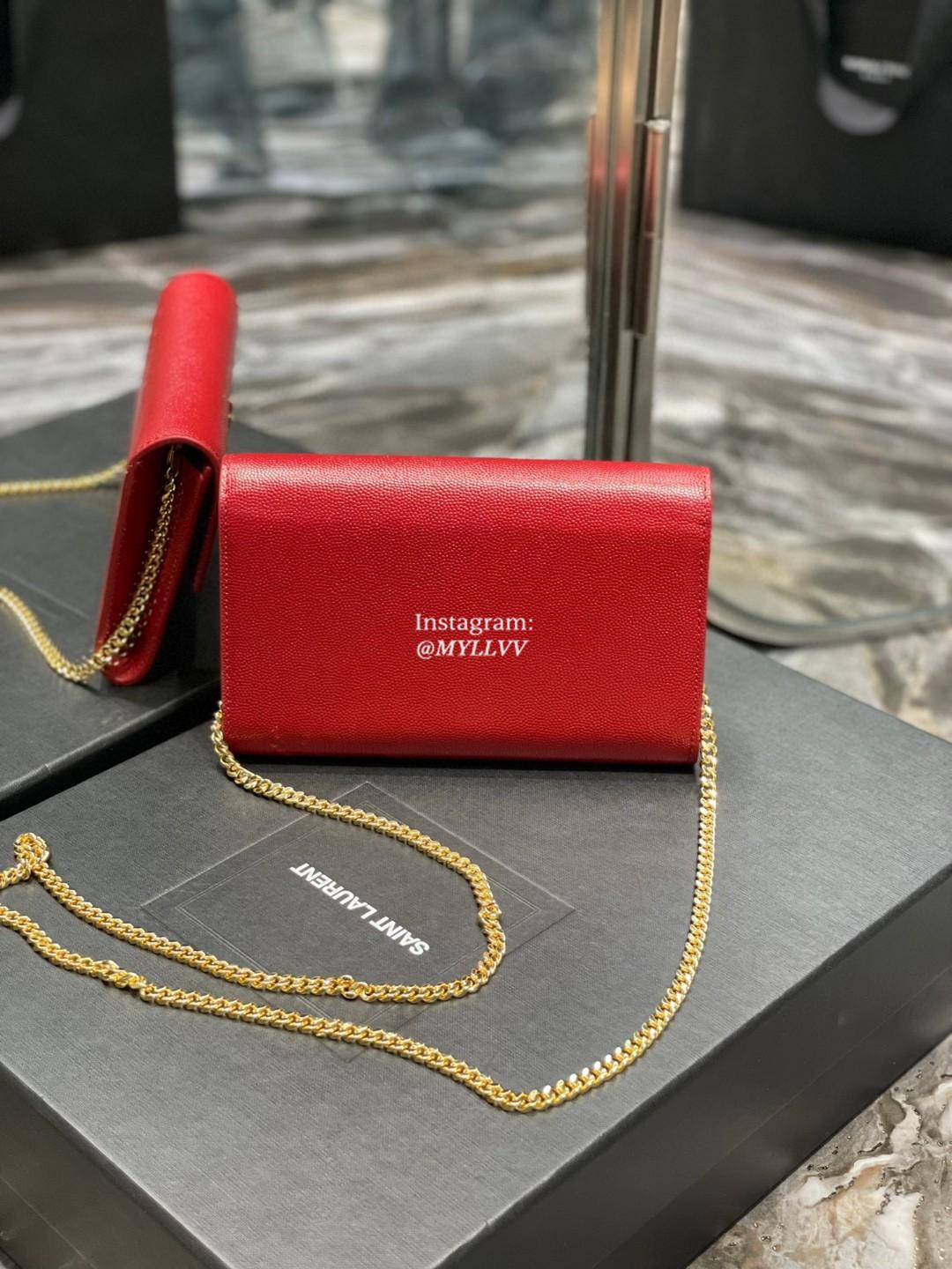 Dimension: 19.0 × 12.0 × 4.0 cm Top Quality Version:MYLLVV » YSL Cowhide Leather Shoulder Bag Red With Gold 607788