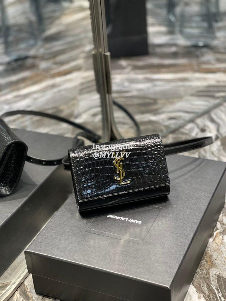 Top Quality Version:MYLLVV » YSL Crocodile Grain Cowhide Leather Belt Bag Black With Gold 534395