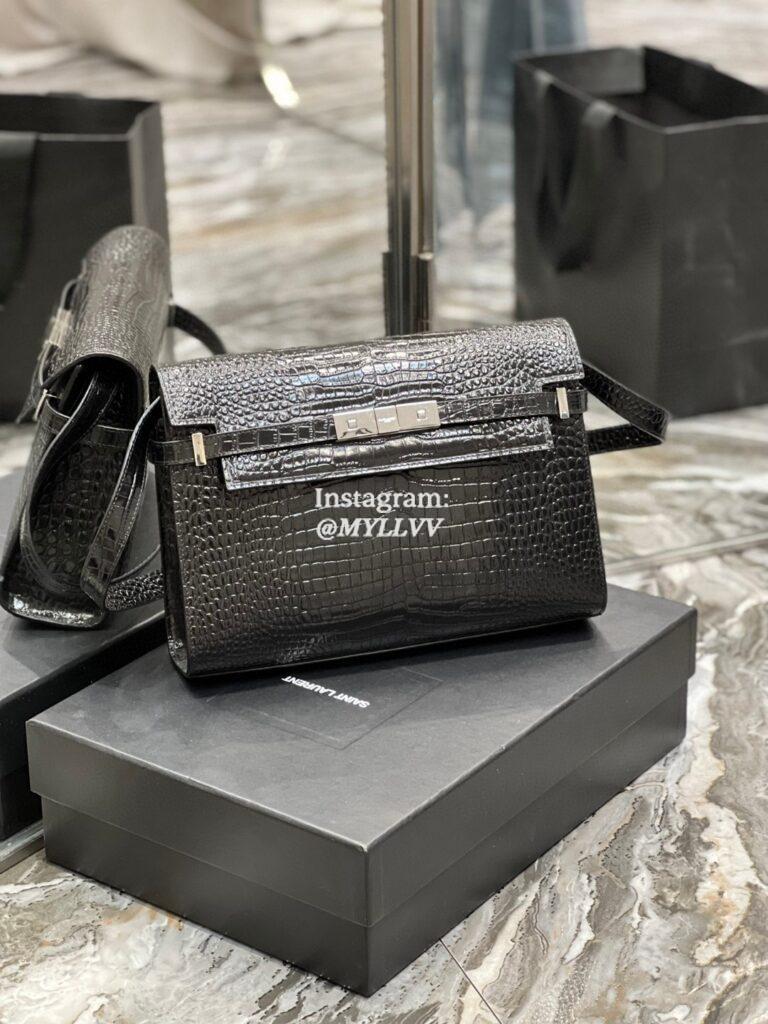 Top Quality Version:MYLLVV » YSL Crocodile Grain Cowhide Leather Manhattan Shoulder Bag Black With Silver 579271