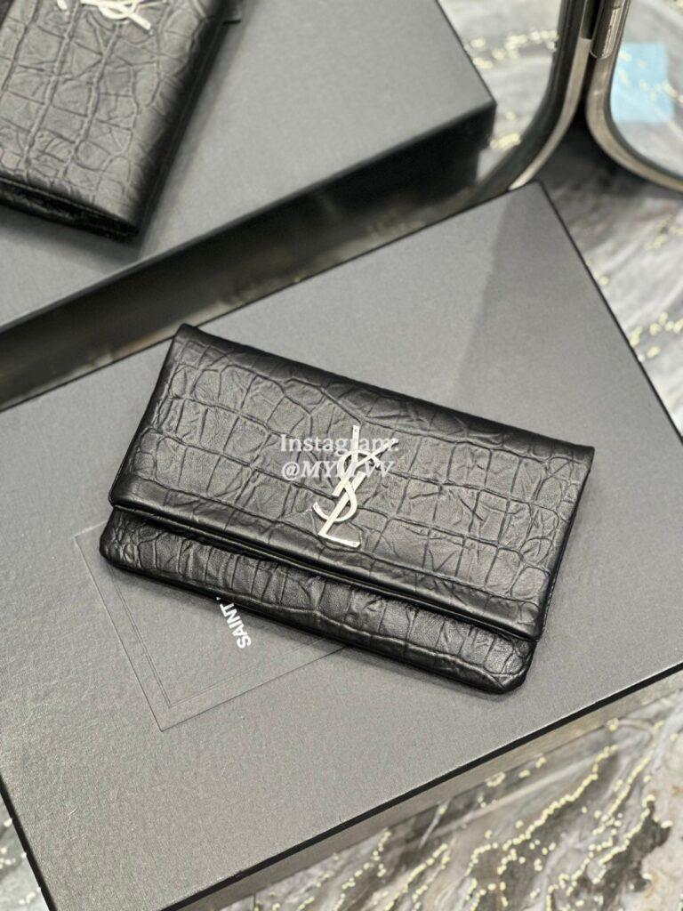 Top Quality Version:MYLLVV » YSL Crocodile Grain Cowhide Leather West Hollywood Handbag Black With Silver 738821