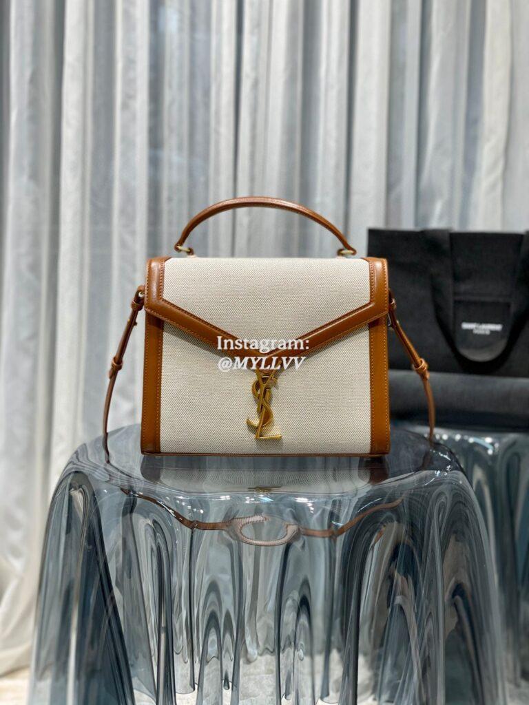 Top Quality Version:MYLLVV » YSL Gunny And Cowhide Leather Cassandra Shoulder Bag Brown With Gold 578000