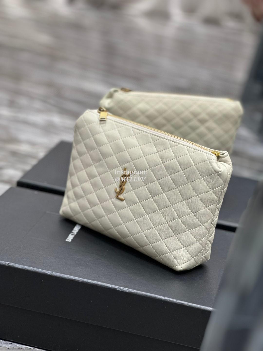 Dimension: 23.0 ×17.0 × 5.0 cm Top Quality Version:MYLLVV » YSL Lambskin Leather Gaby Cosmetic Bag White With Gold 733955