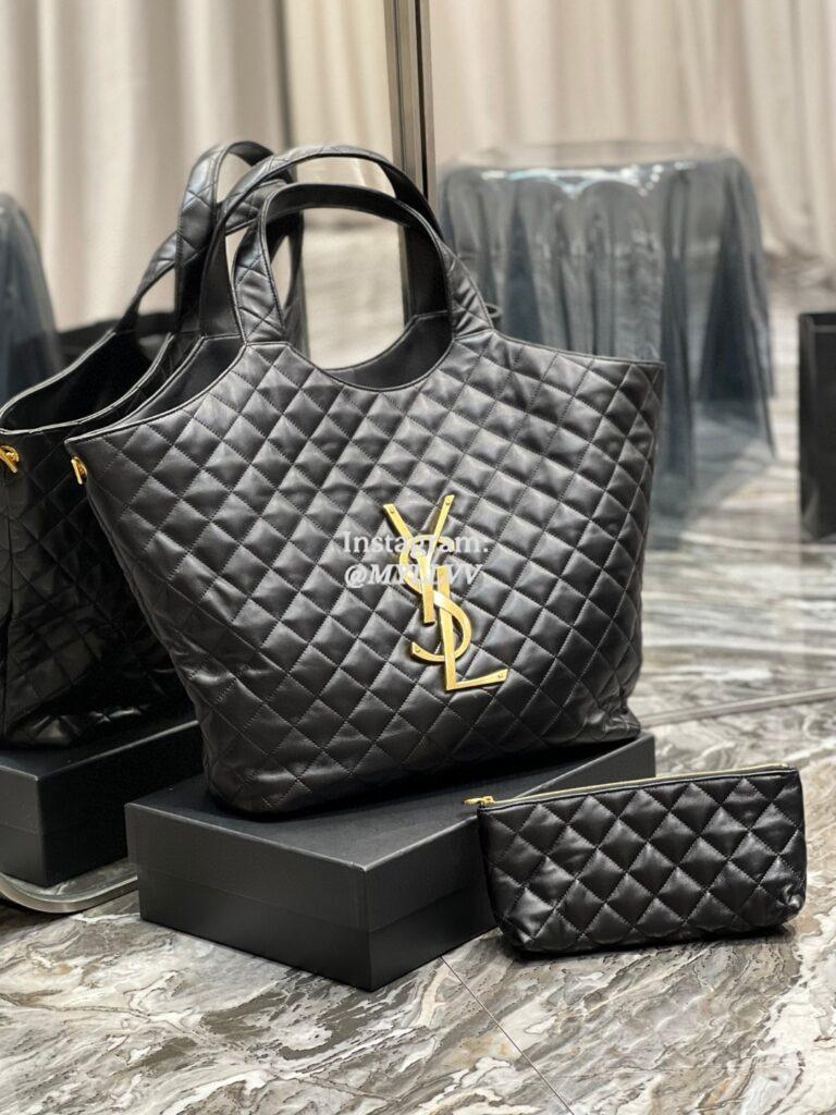 Top Quality Version:MYLLVV » YSL Lambskin Leather Icare Handle Bag Black With Goldden Hardware698651