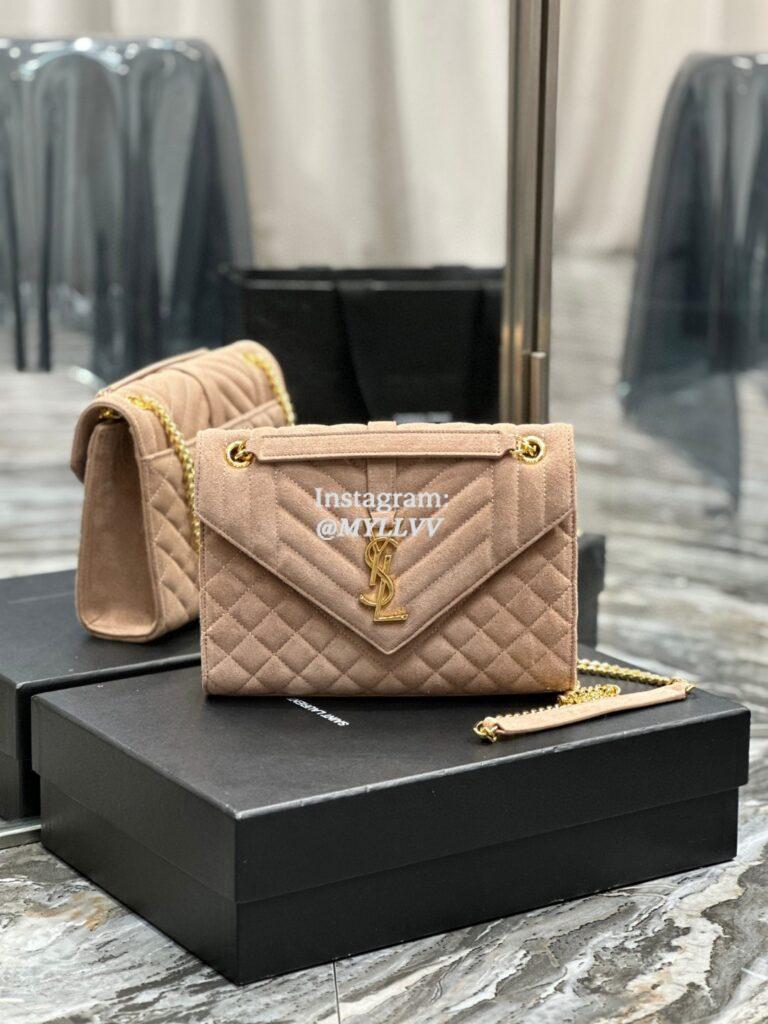 Top Quality Version:MYLLVV » YSL Nubuck Leather Envelope Shoulder Bag Dark Apricot With Gold 487206