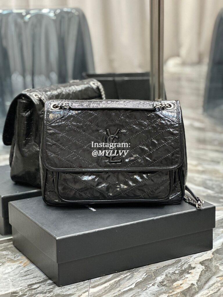 Top Quality Version:MYLLVV » YSL Oil Wax Cowhide Leather Niki Baby Shoulder Bag All Black 498830