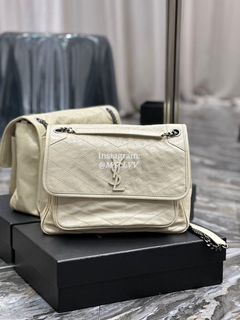 Top Quality Version:MYLLVV » YSL Oil Wax Cowhide Leather Niki Baby Shoulder Bag All White 498830
