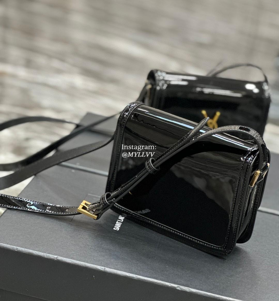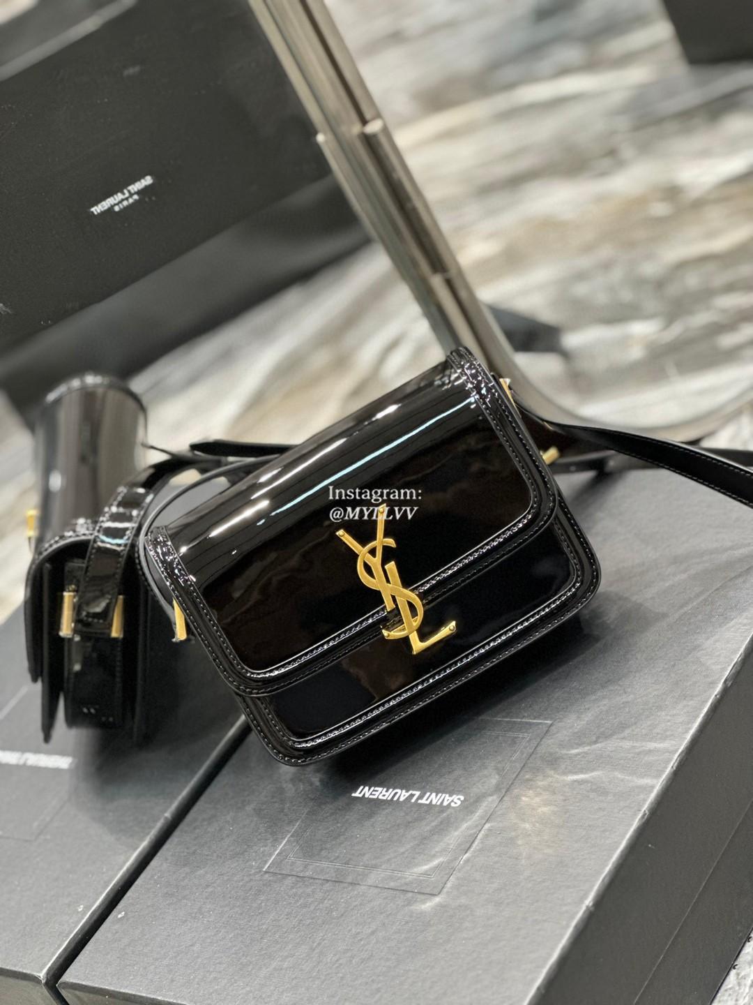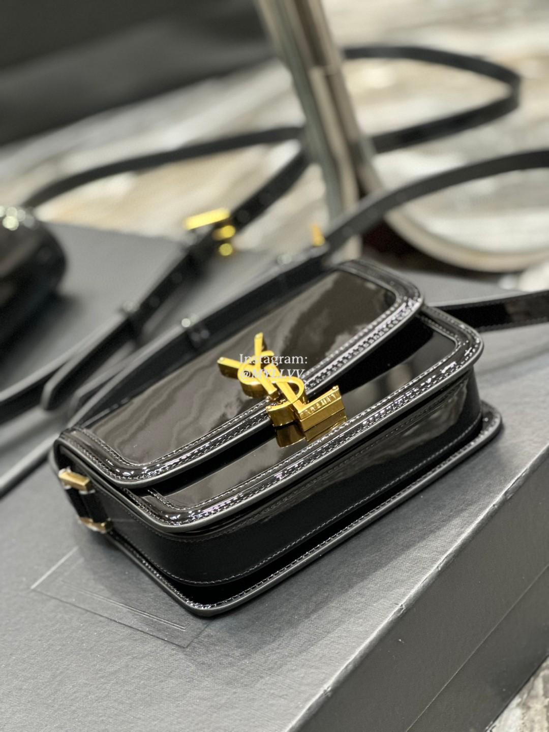 Dimension: 19.0 × 13.0× 5.0 cm Top Quality Version:MYLLVV » YSL Patent Leather Solferino Box Bag Black With Gold 634306