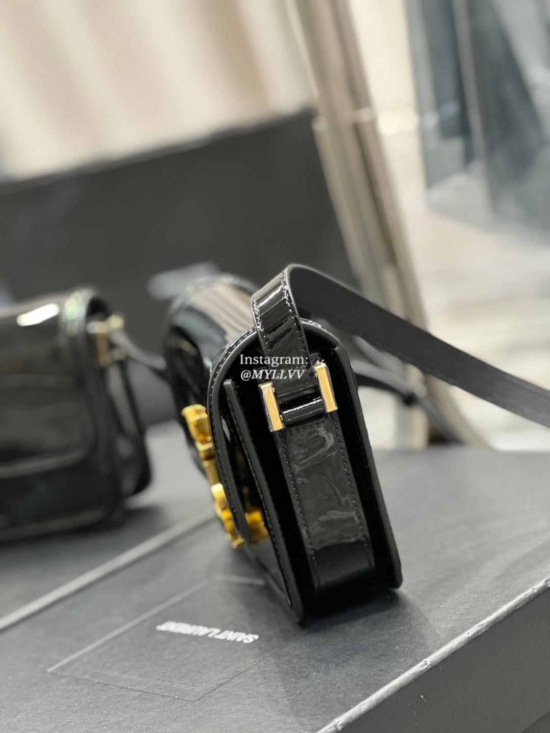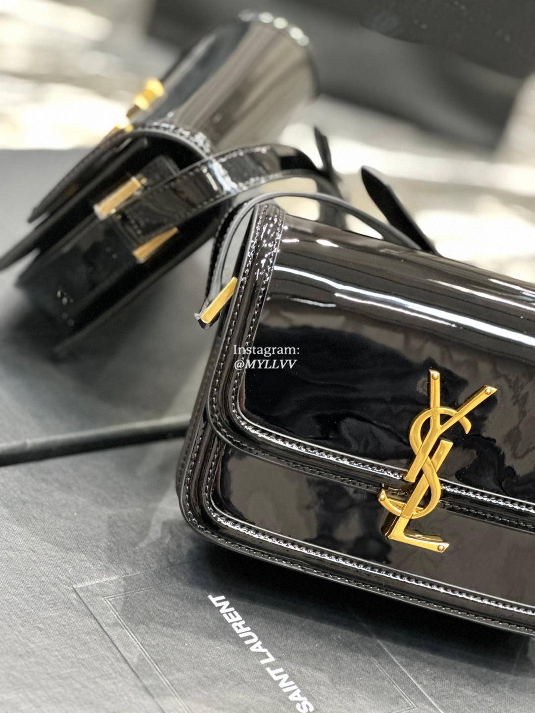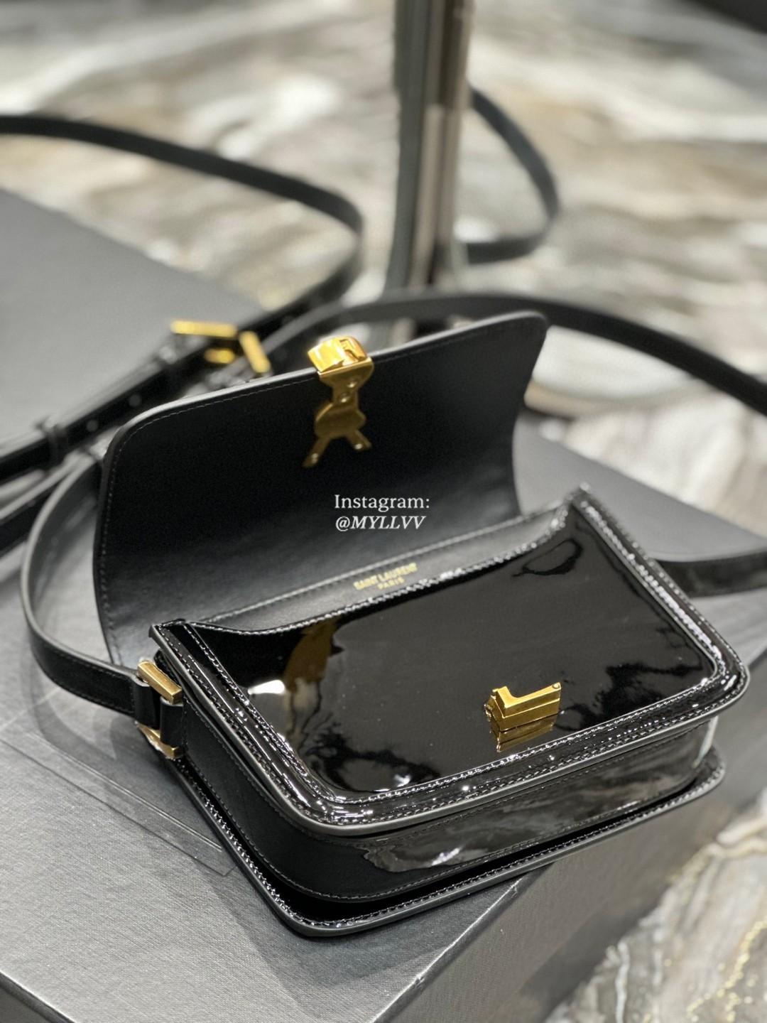 Dimension: 19.0 × 13.0× 5.0 cm Top Quality Version:MYLLVV » YSL Patent Leather Solferino Box Bag Black With Gold 634306